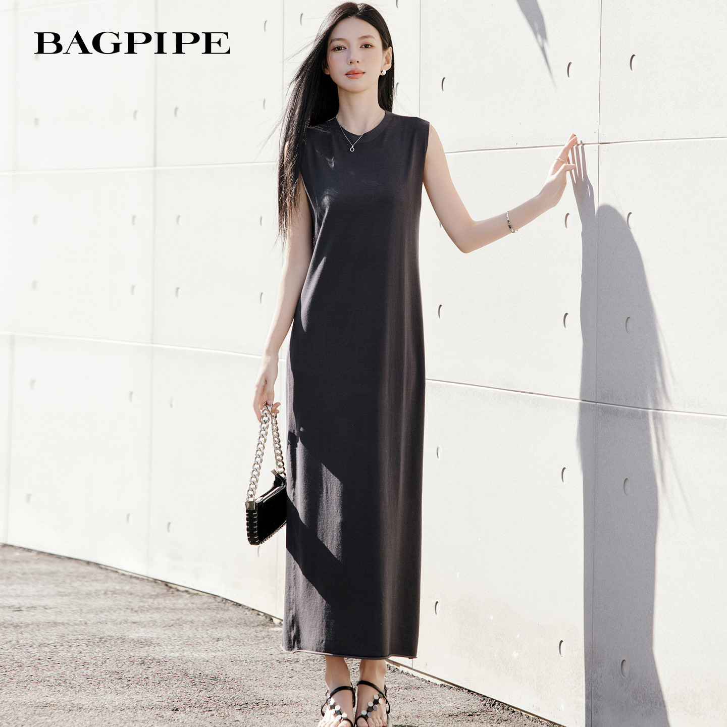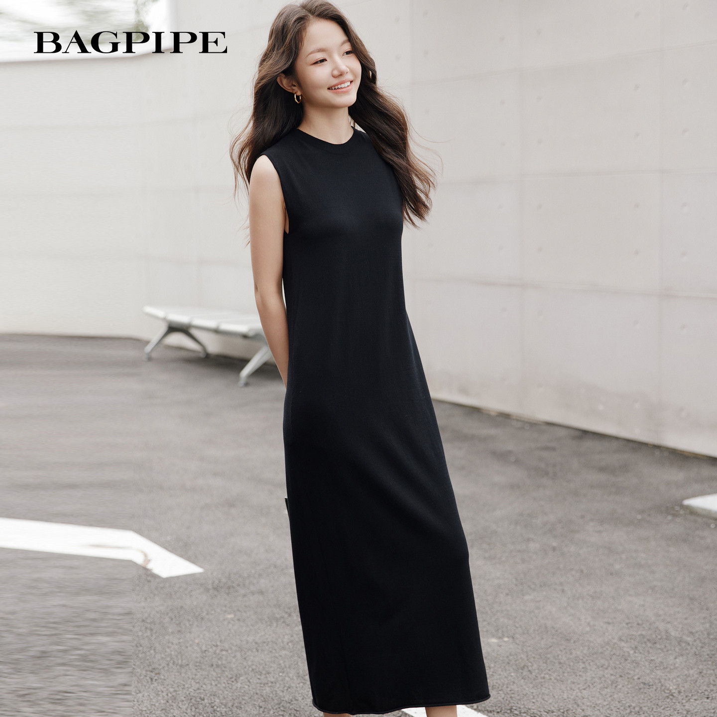 风笛2026夏新品极简风圆领针织长裙 小个子显高百搭通勤连衣裙