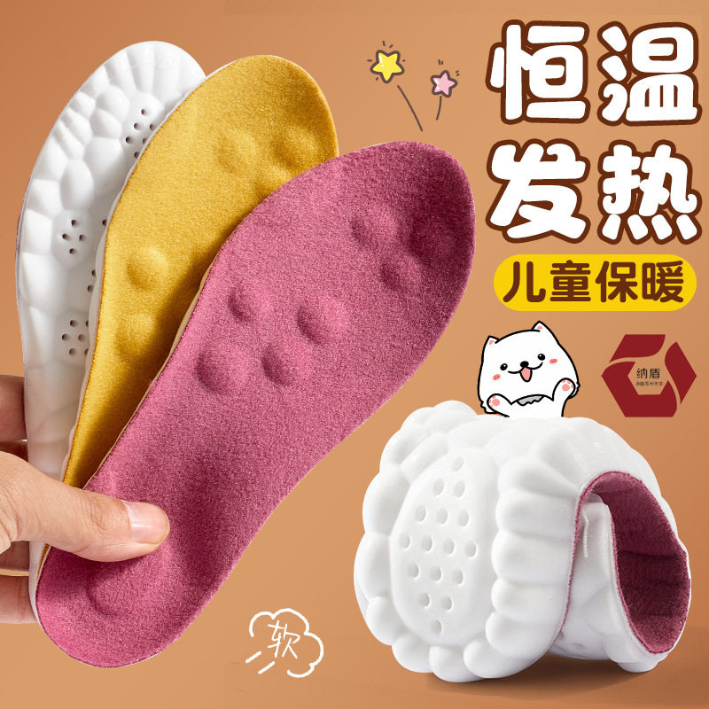 儿童恒温发热鞋垫保暖冬防臭吸汗运动鞋垫加厚踩屎感加绒儿童鞋垫