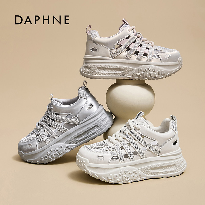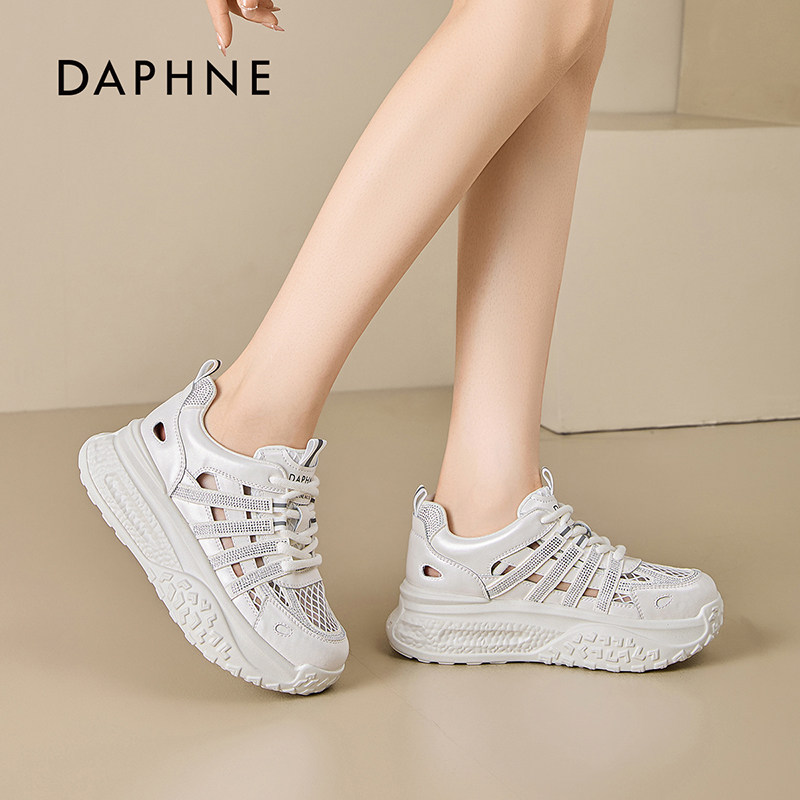 达芙妮厚底网面镂空老爹鞋女款时尚水钻软底透气不闷脚休闲运动鞋