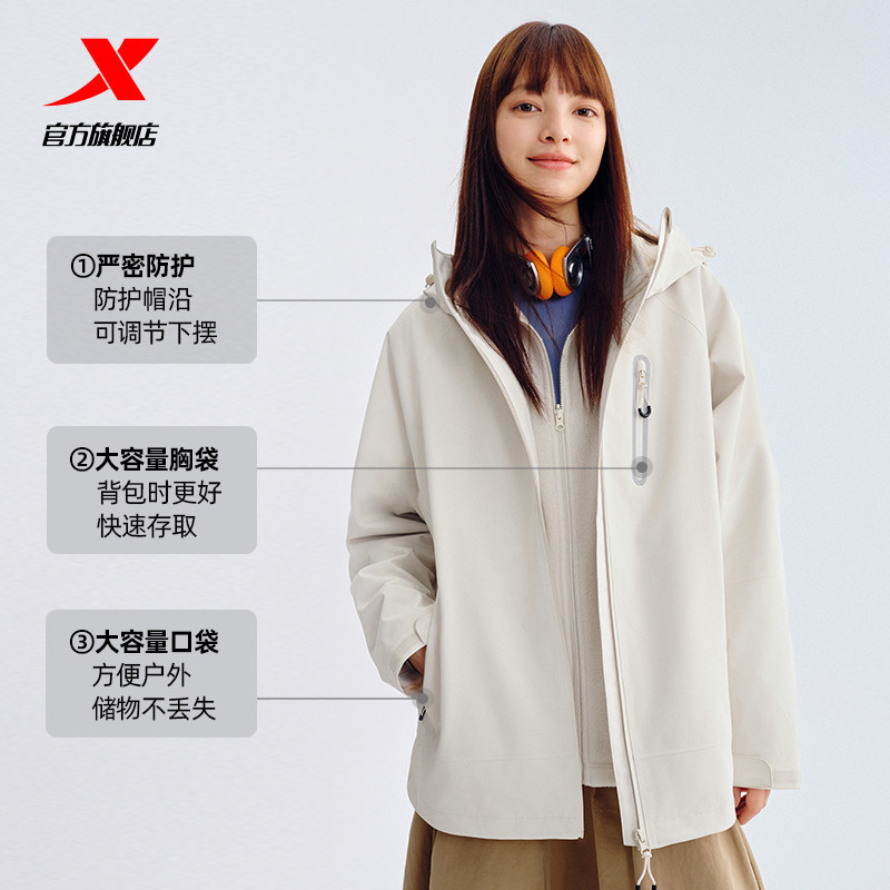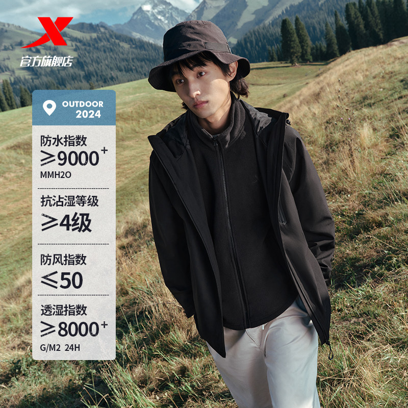 特步羽翼三合一冲锋衣男女同款户外防水情侣登山服户外防风外套