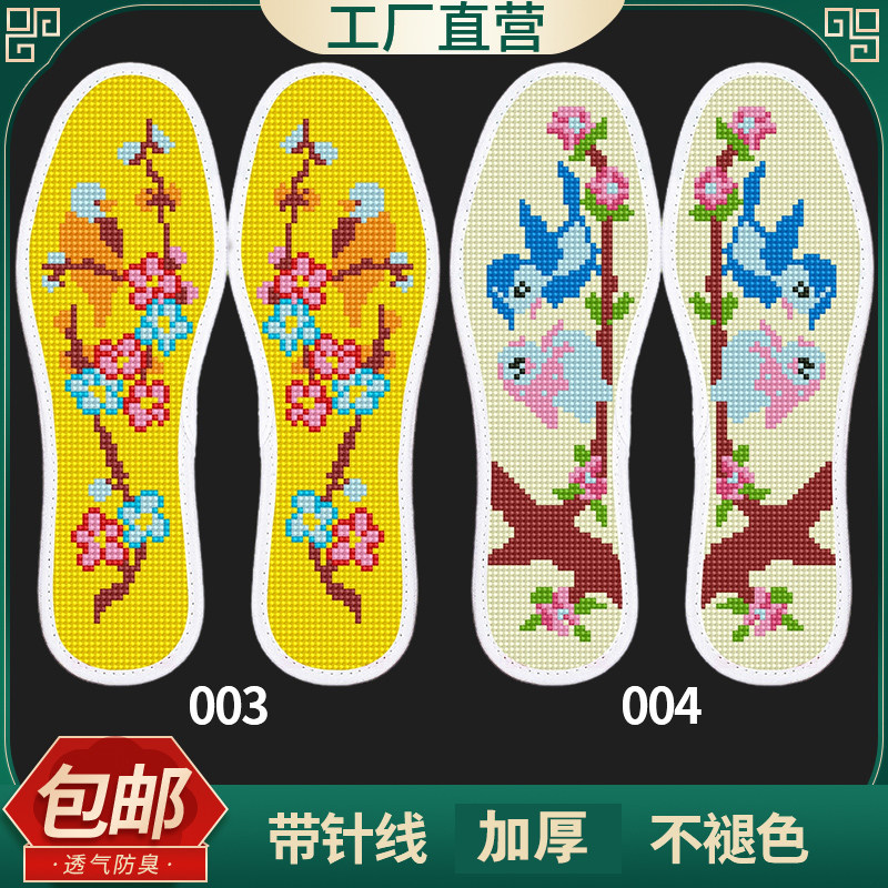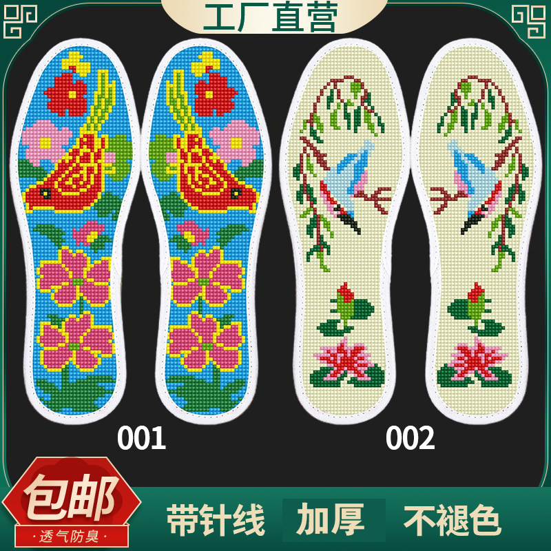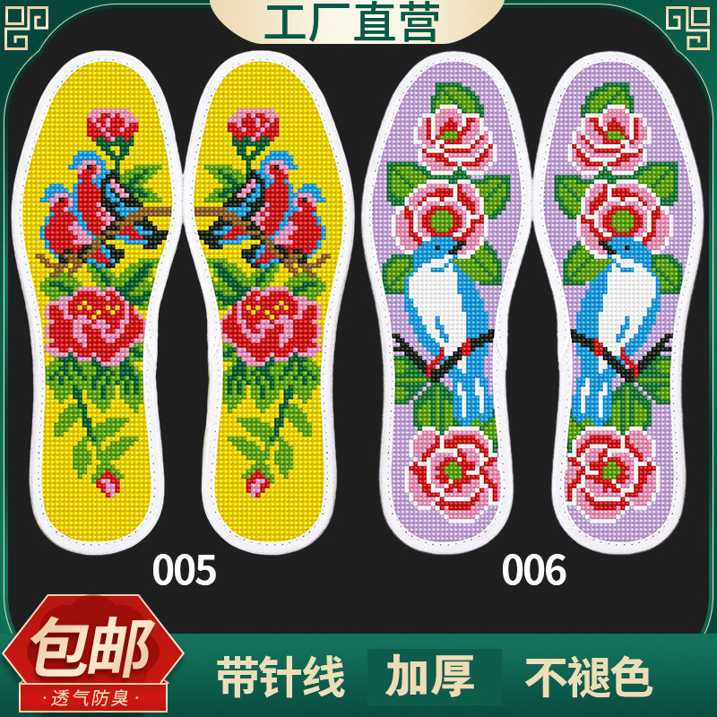 【2双装】十字绣鞋垫新款加厚不褪色纯棉布面半成品带针线男女