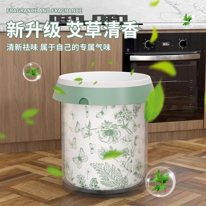 家用垃圾袋艾草驱蚊印花手提式抽绳特厚垃圾袋厨房加厚大号清洁袋