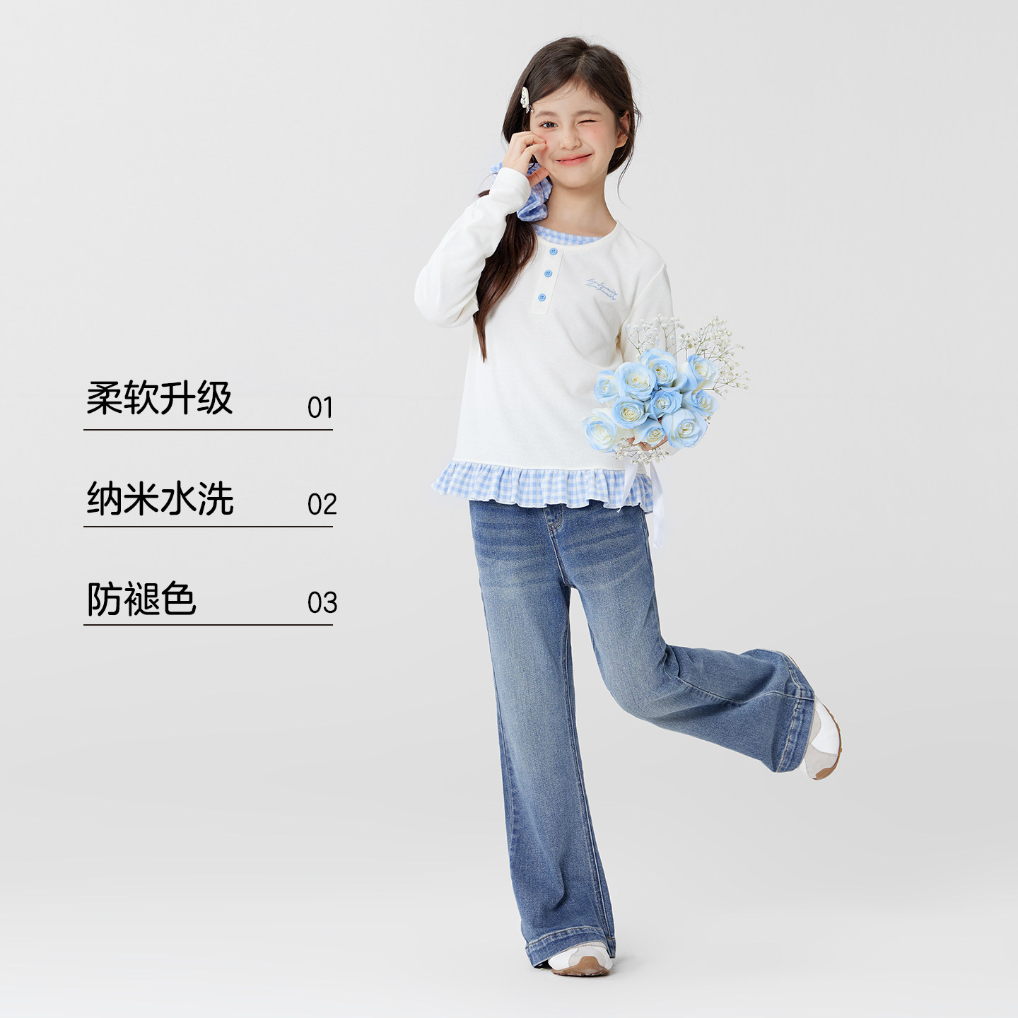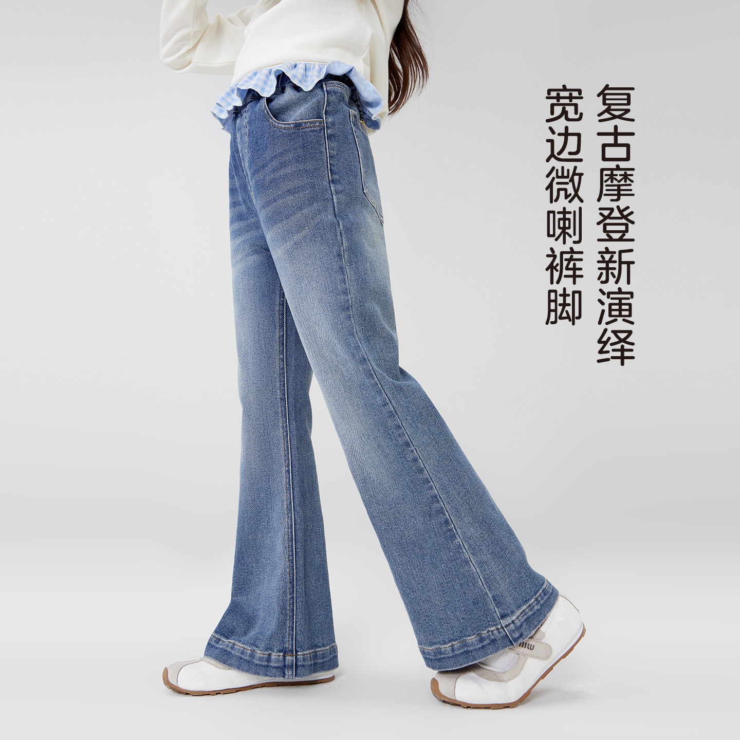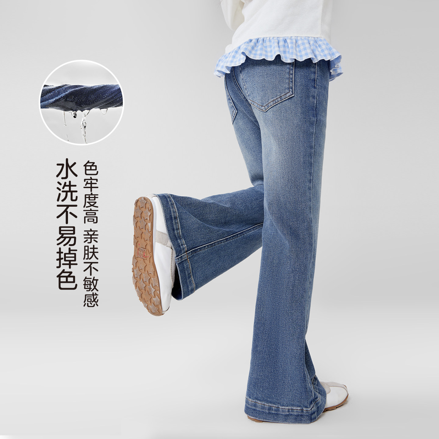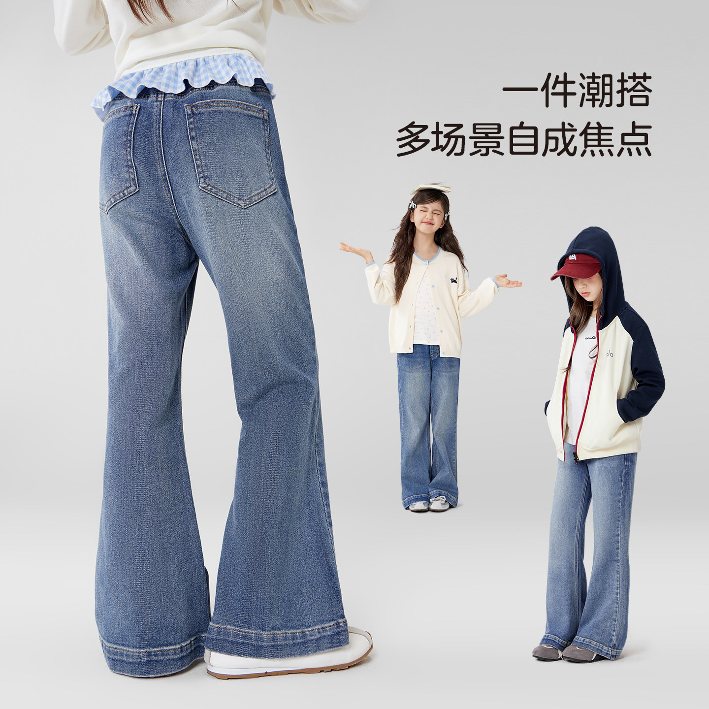 左西女童牛仔裤春装儿童洋气喇叭裤春秋款长裤2026新款中大童裤子