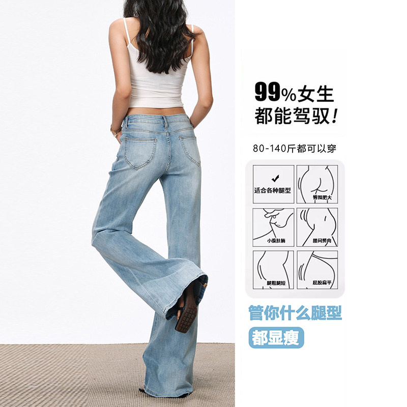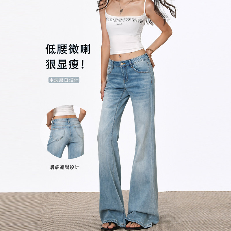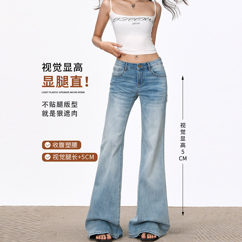 浅色低腰微喇牛仔裤女夏季2026新款辣妹小个子不贴腿直筒喇叭裤子