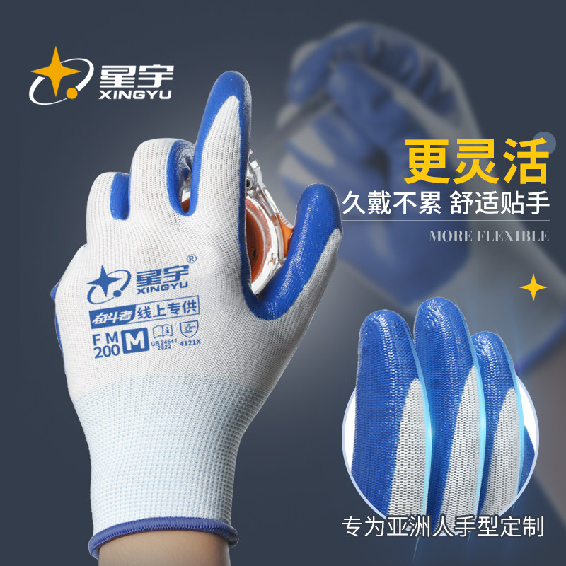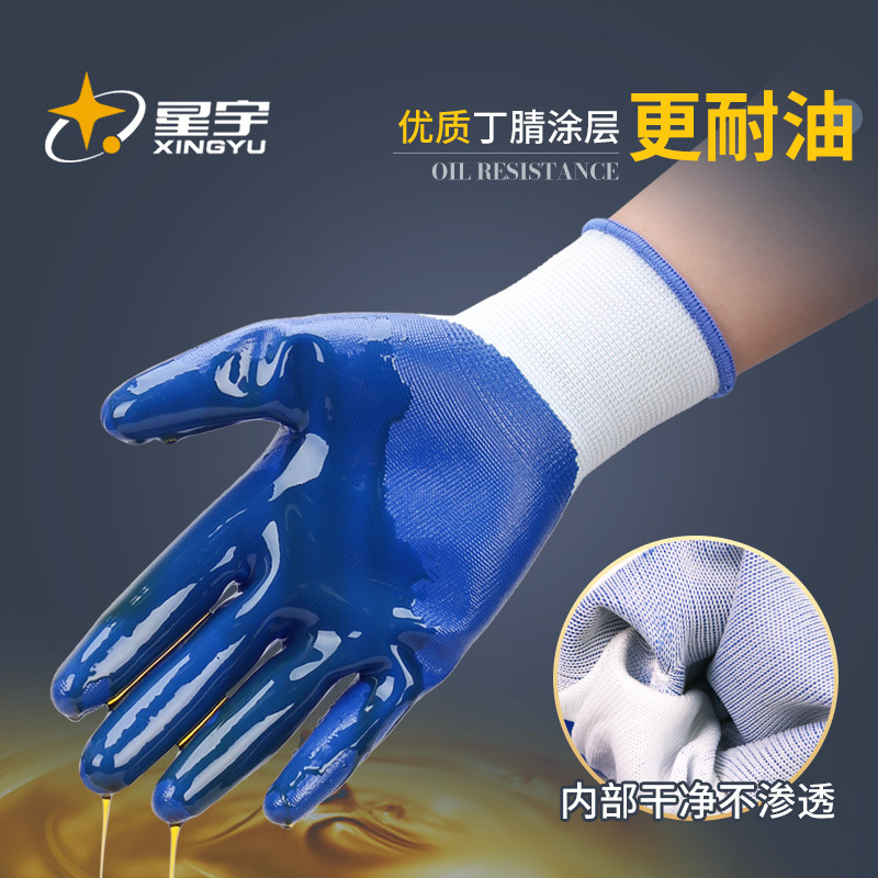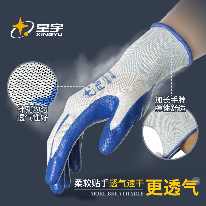 星宇手套劳保耐磨工作丁腈乳胶橡胶防滑耐用劳动干活工地防护防油
