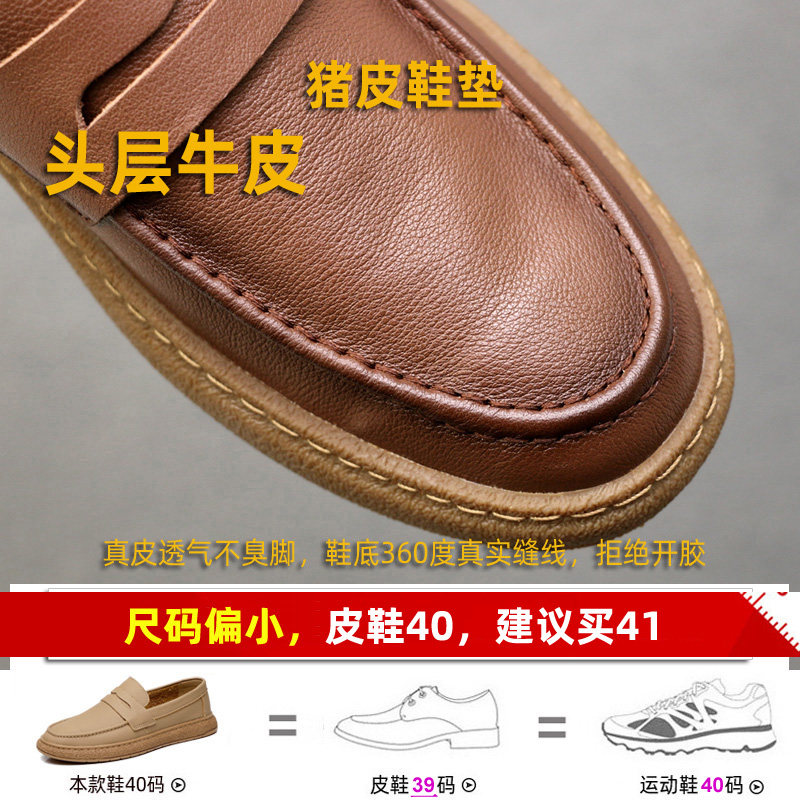 头层牛皮豆豆鞋男真皮乐福鞋夏季透气休闲懒人一脚蹬软皮软底皮鞋