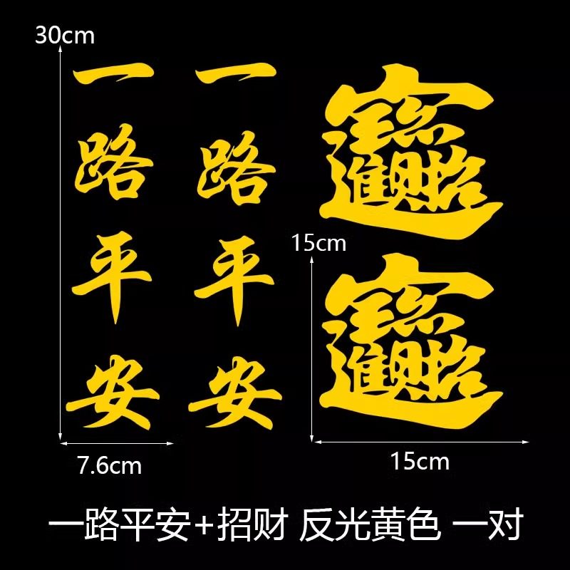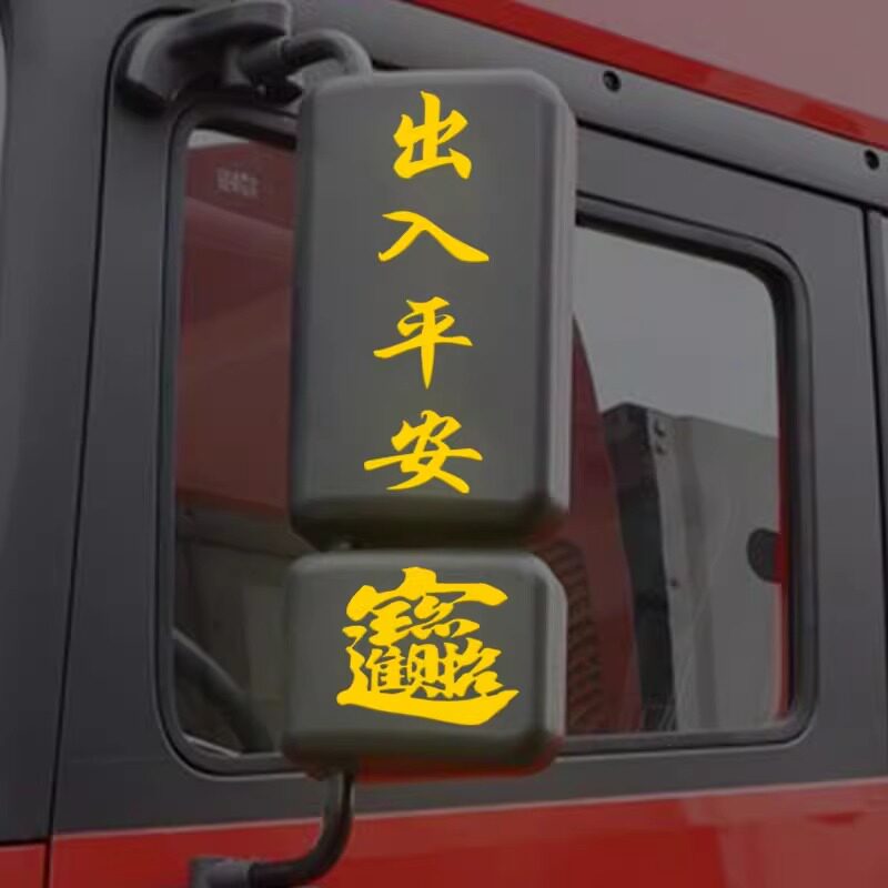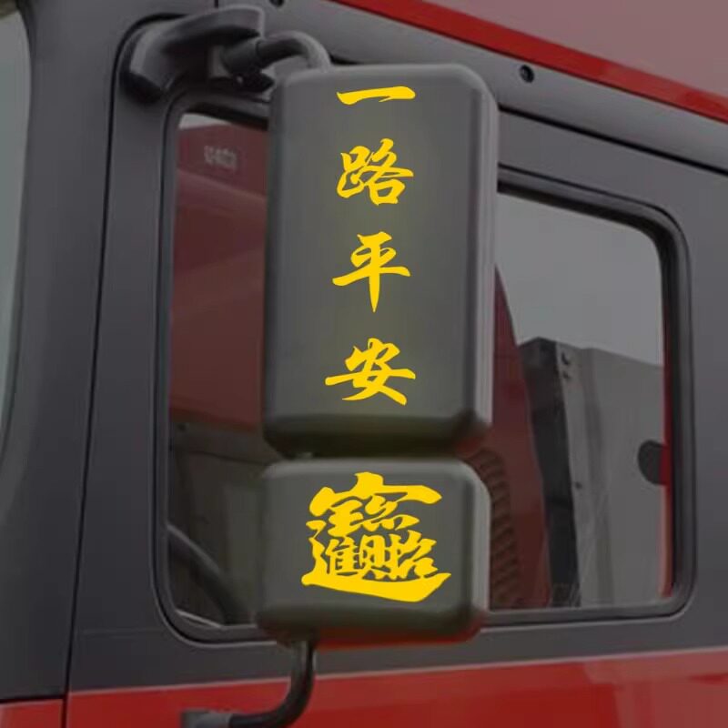 货车后视镜创意装饰贴卡车后视镜反光对联一路平安招财进宝车贴画