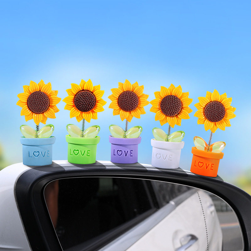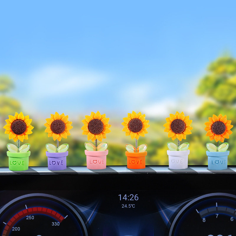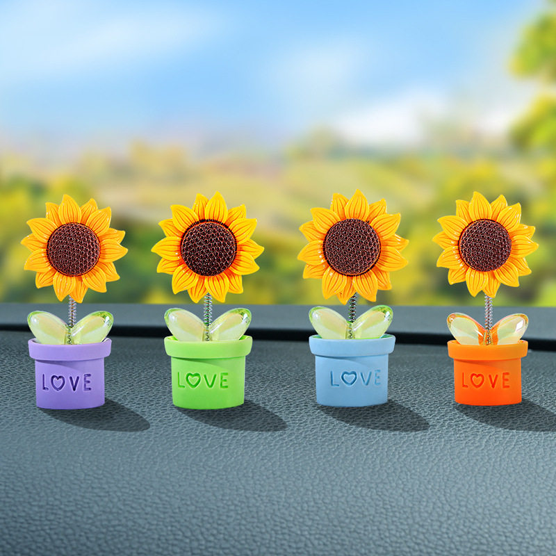 创意太阳花朵汽车摇头摆件车载中控仪表台网红摆件车内装饰饰品女