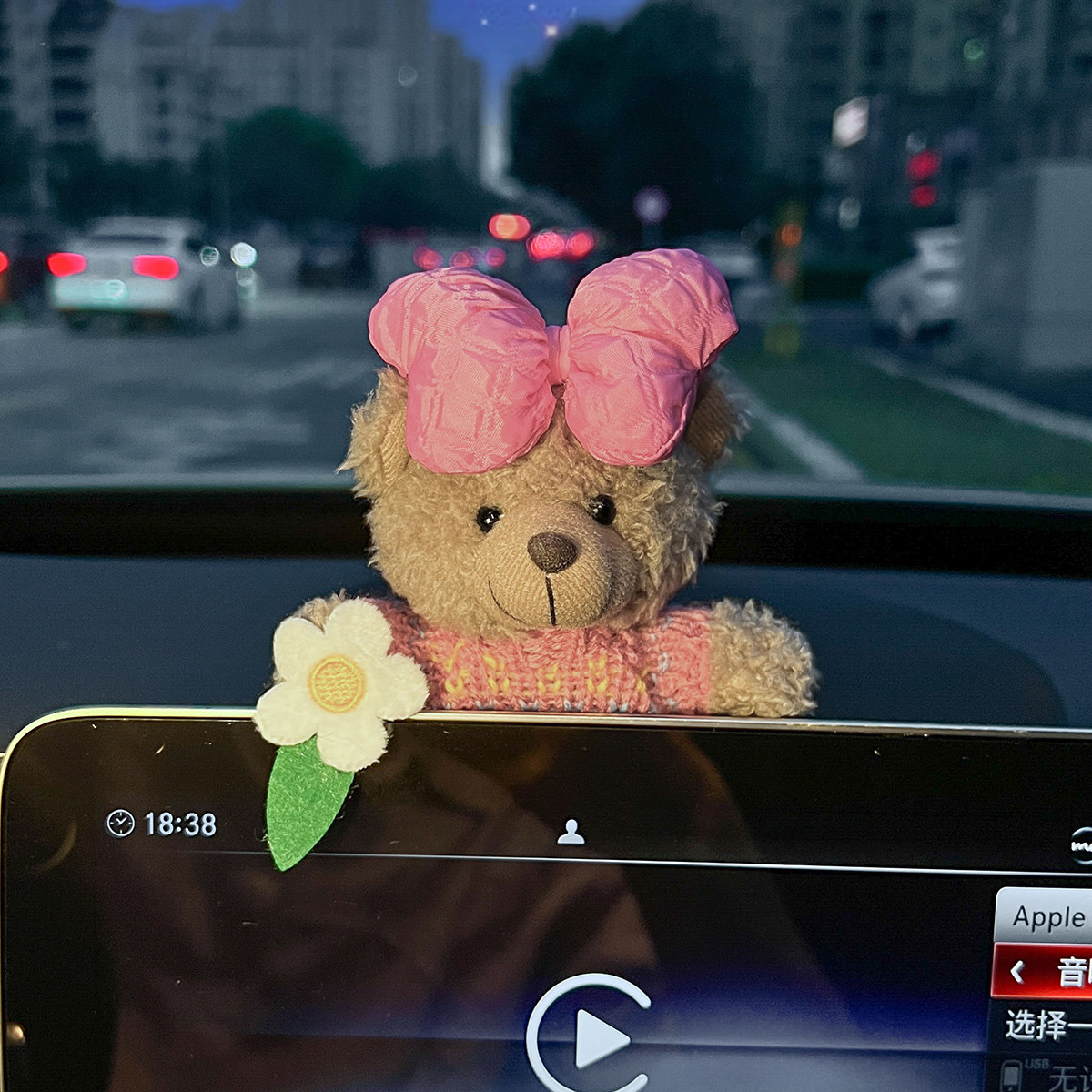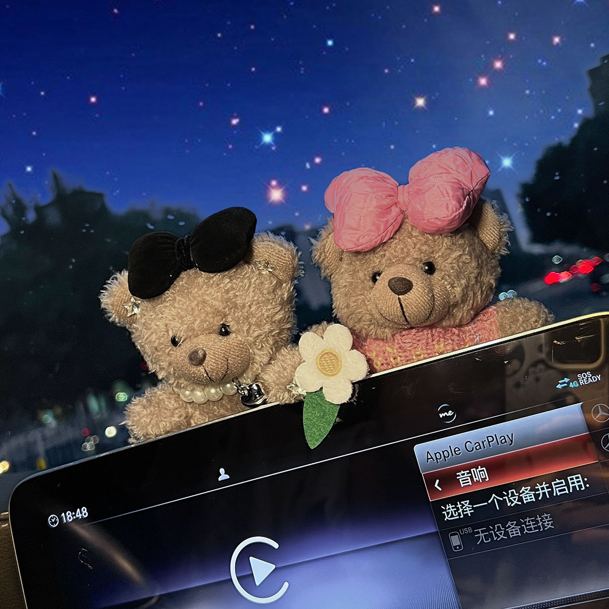 汽车创意可爱棕熊车载中控台显示屏仪表台屏幕摆件R装饰品2024新