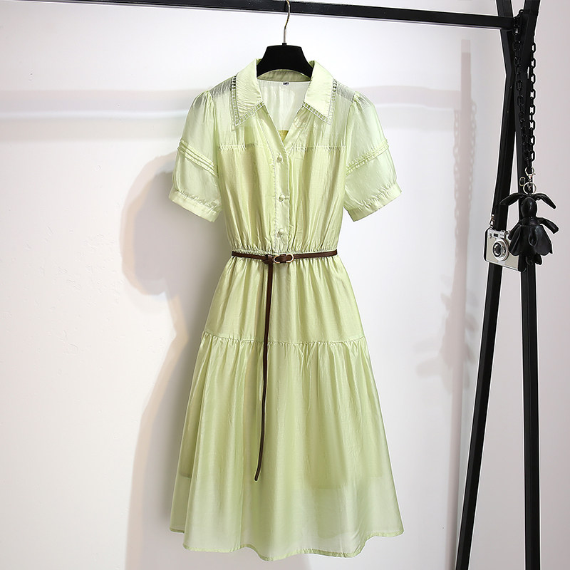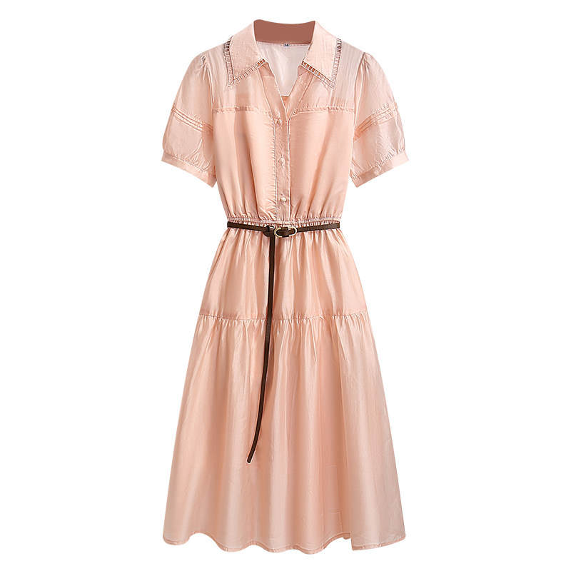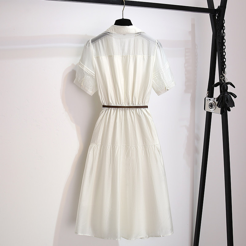 法式白色天丝连衣裙女气质2026夏季新款收腰轻奢高级感衬衫式裙子