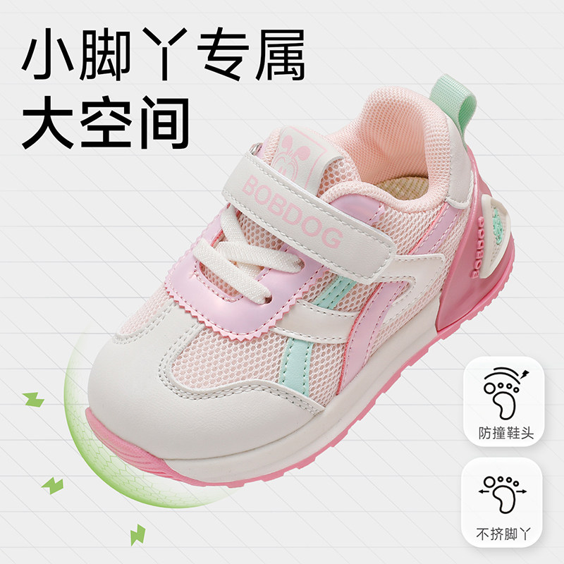 巴布豆童鞋女童鞋子2026新款春款女宝网面透气运动鞋女儿童学步鞋