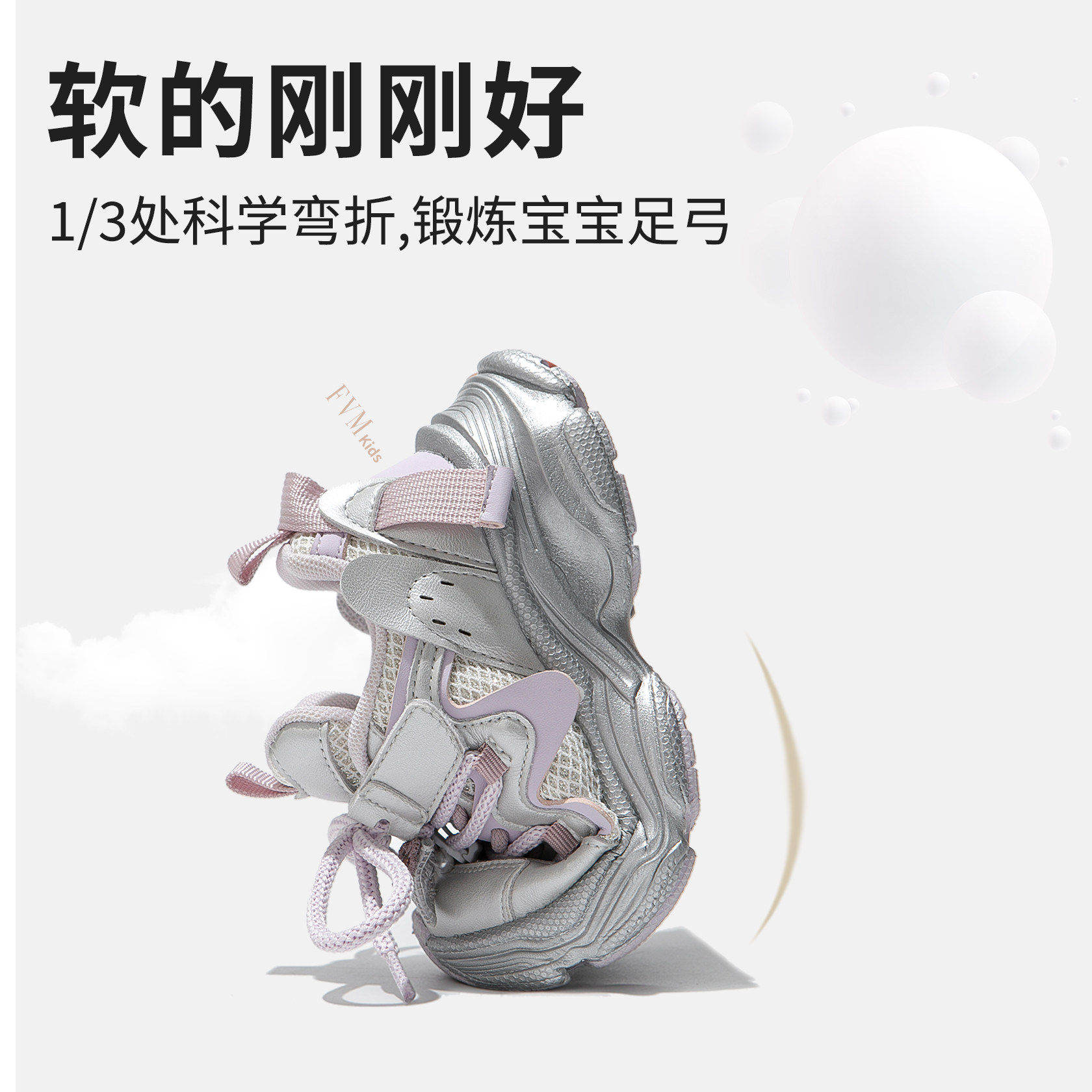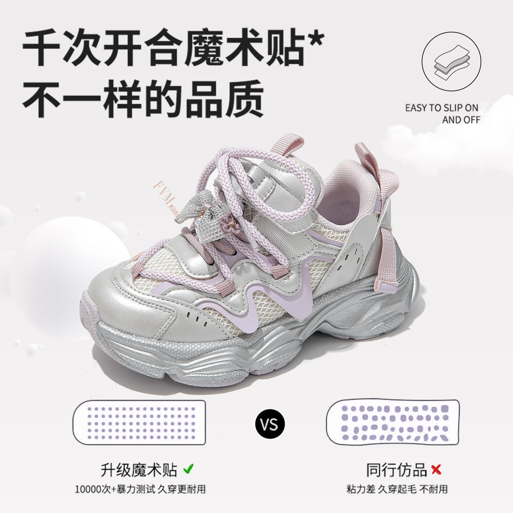 FVM女童鞋子儿童软底运动老爹鞋2026新款春季春款网面透气中大童