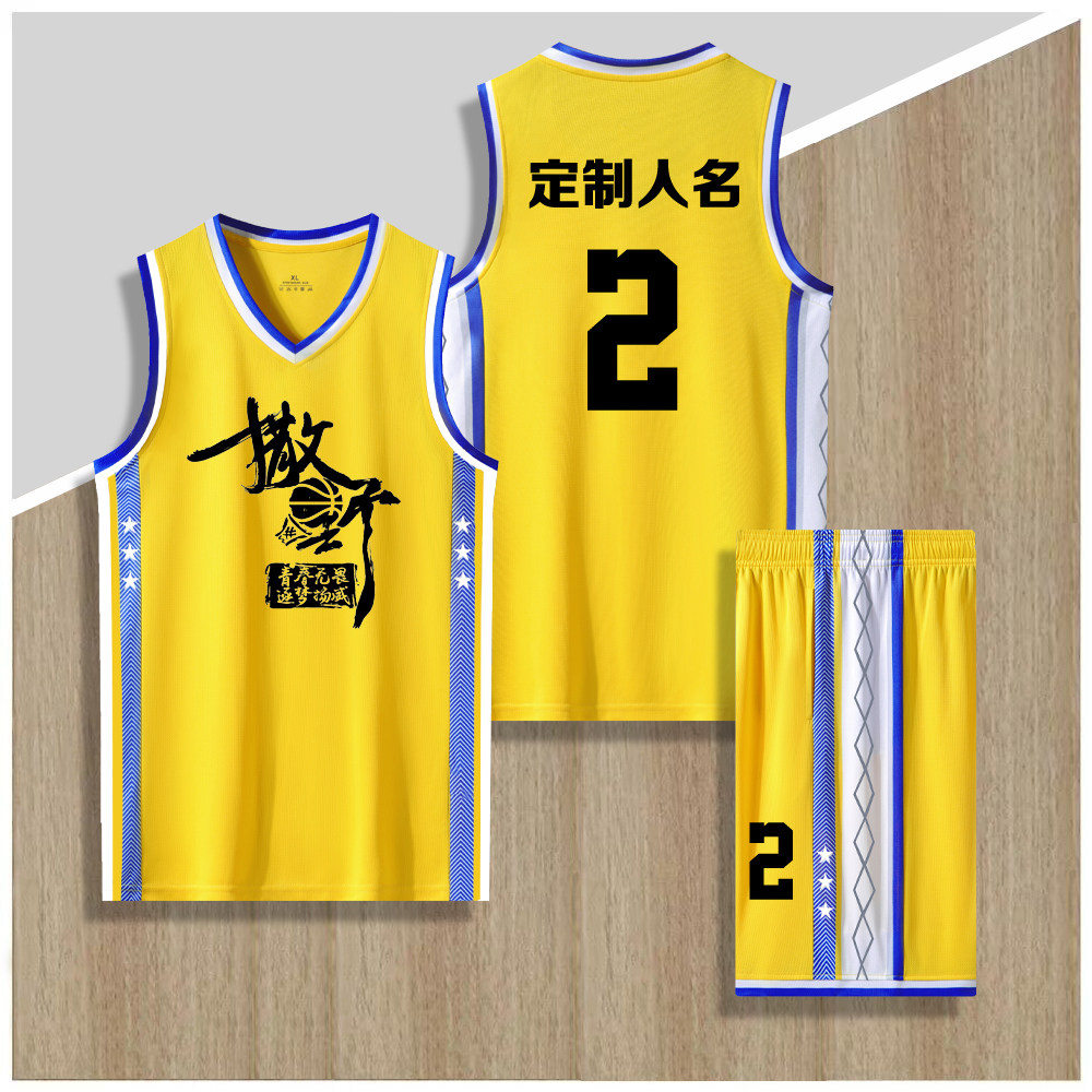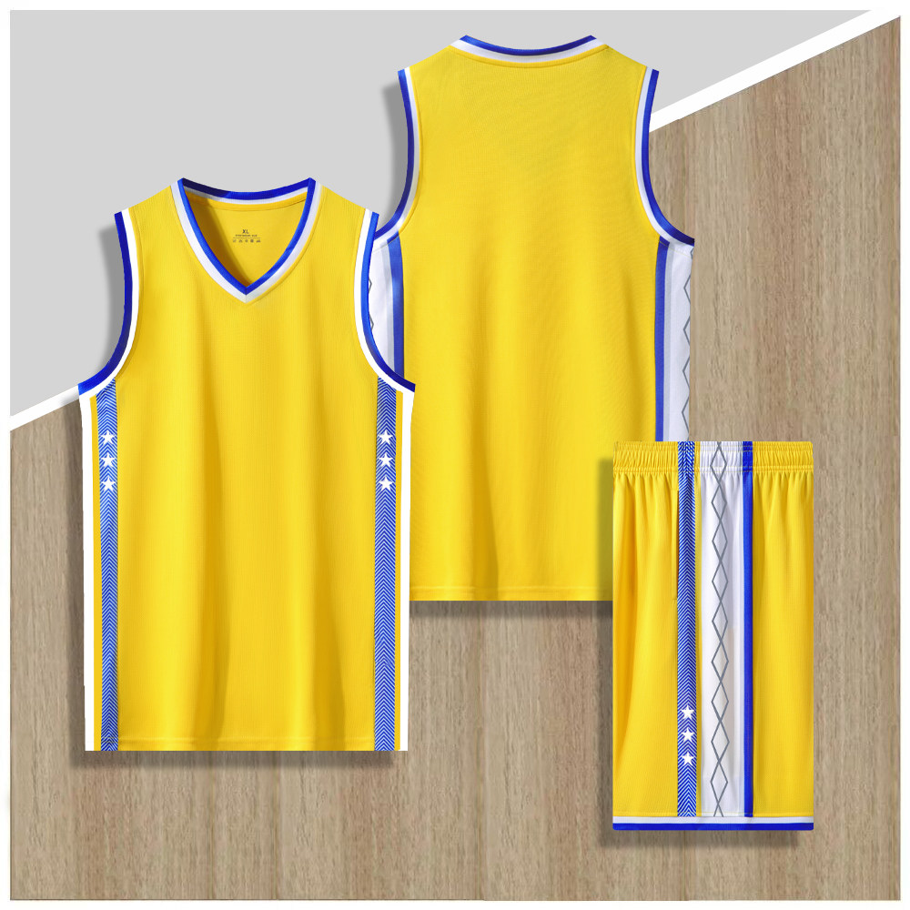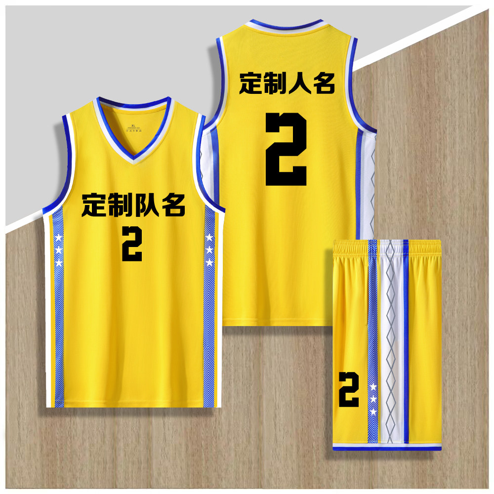 新款成人儿童学生篮球服套装背心短裤训练篮球衣定制印字 2302黄
