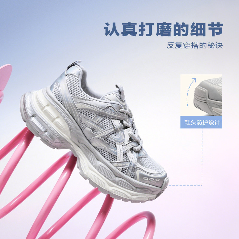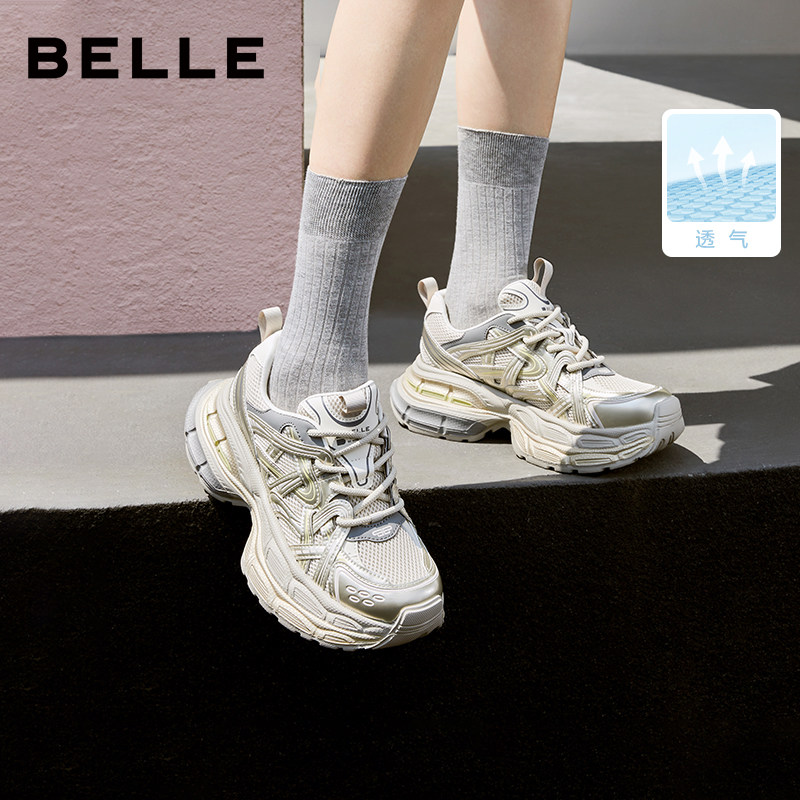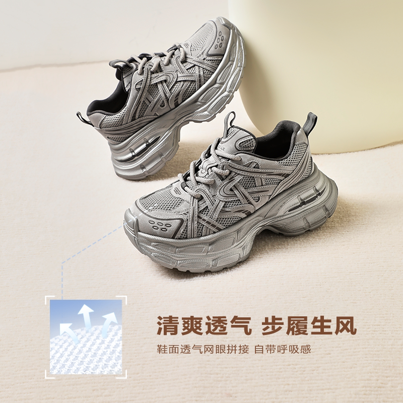 张凌赫同款百丽星河轨迹网面老爹鞋女新款增高鞋休闲厚底运动鞋预