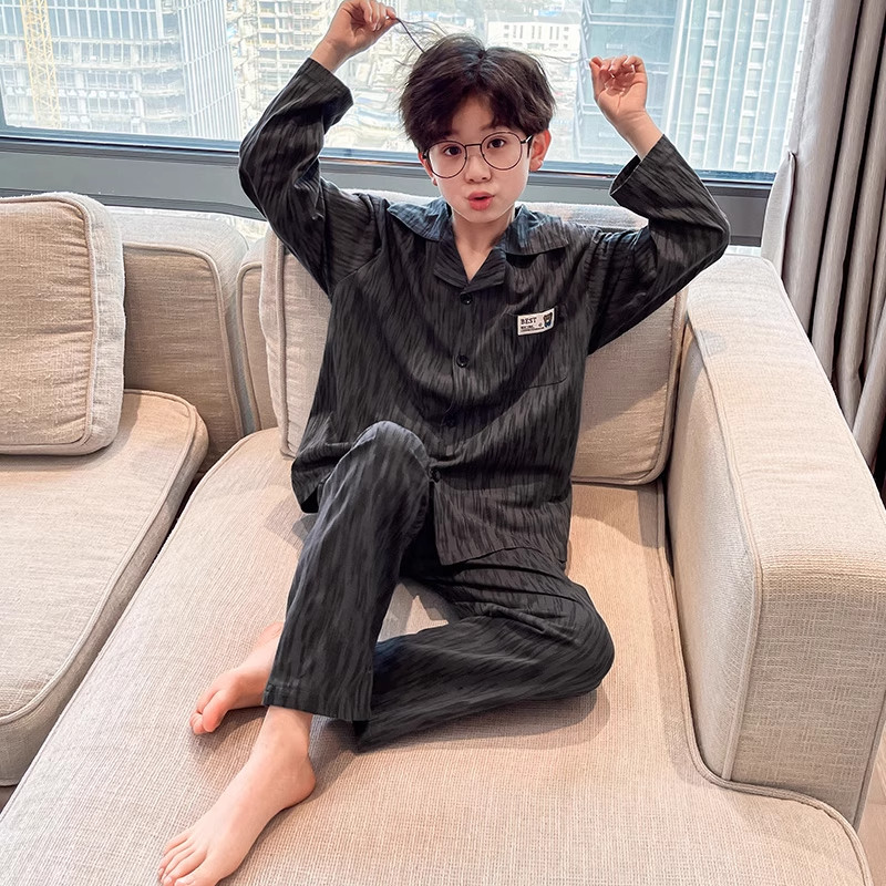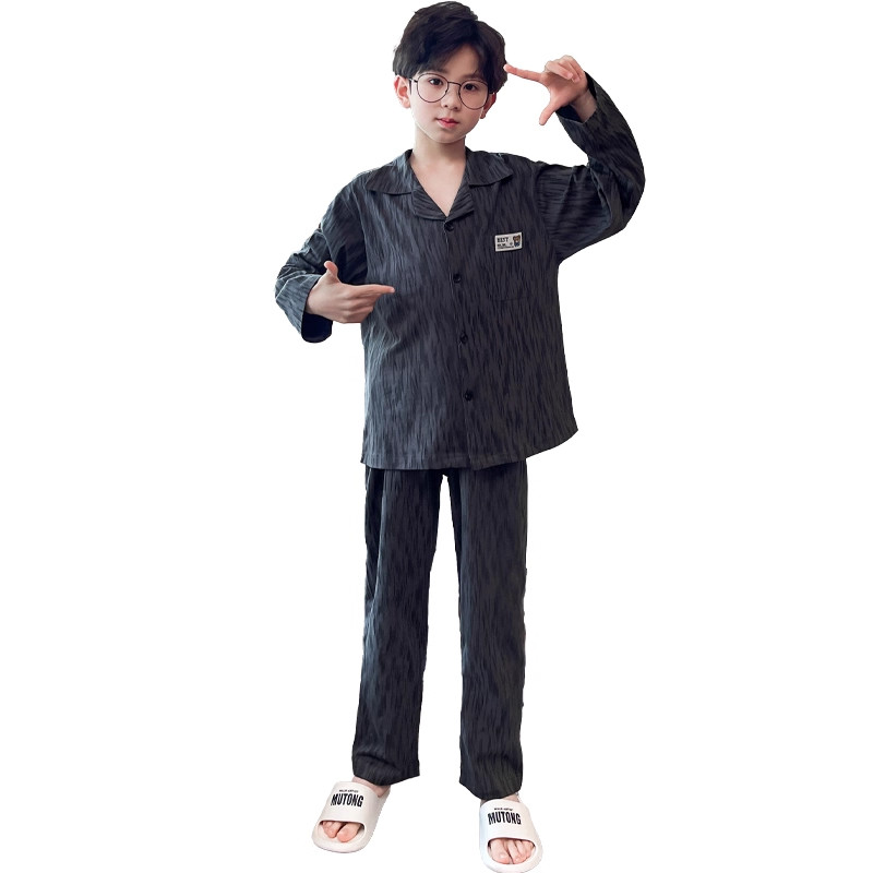 睡衣秋季儿童长袖2026新款男童简约洋气薄款春款中大童家居服套装