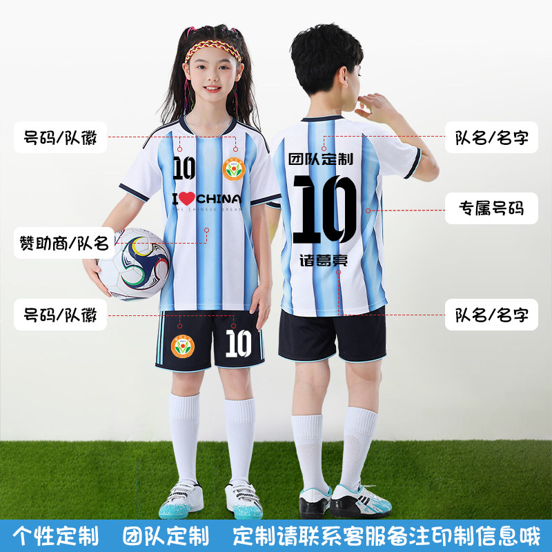幼儿童足球服小学生运动班服短袖阿根廷球衣梅西训练套装男定制