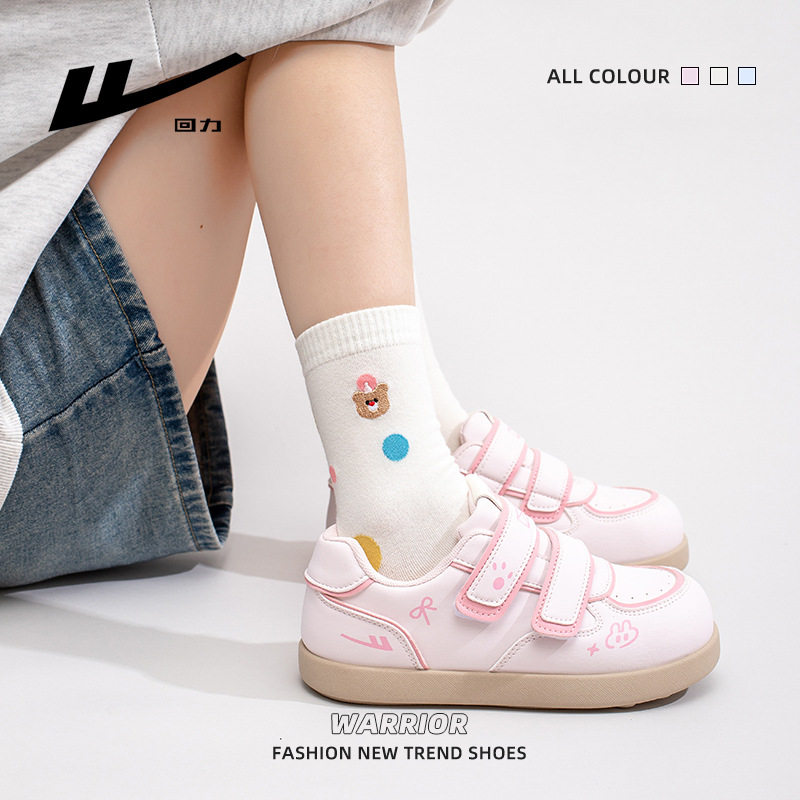 回力女鞋纯色简约魔术贴鞋子春季新款时尚百搭休闲鞋气质学生板鞋