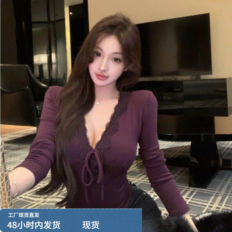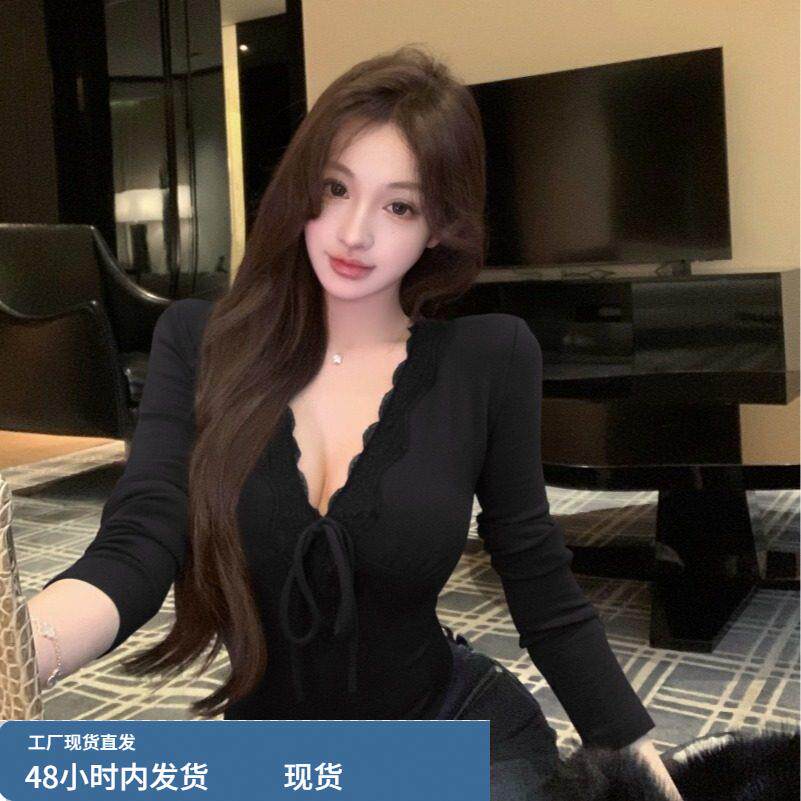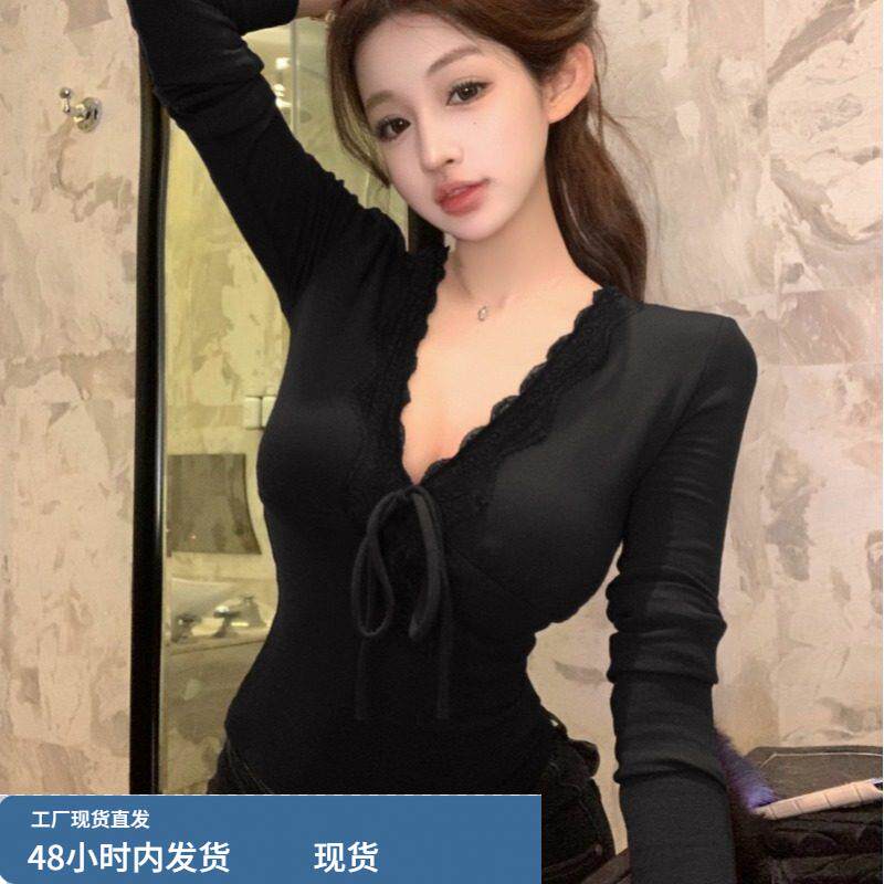 设计感小众蕾丝边长袖T恤修身显瘦上衣秋冬新款法式气质打底衫女