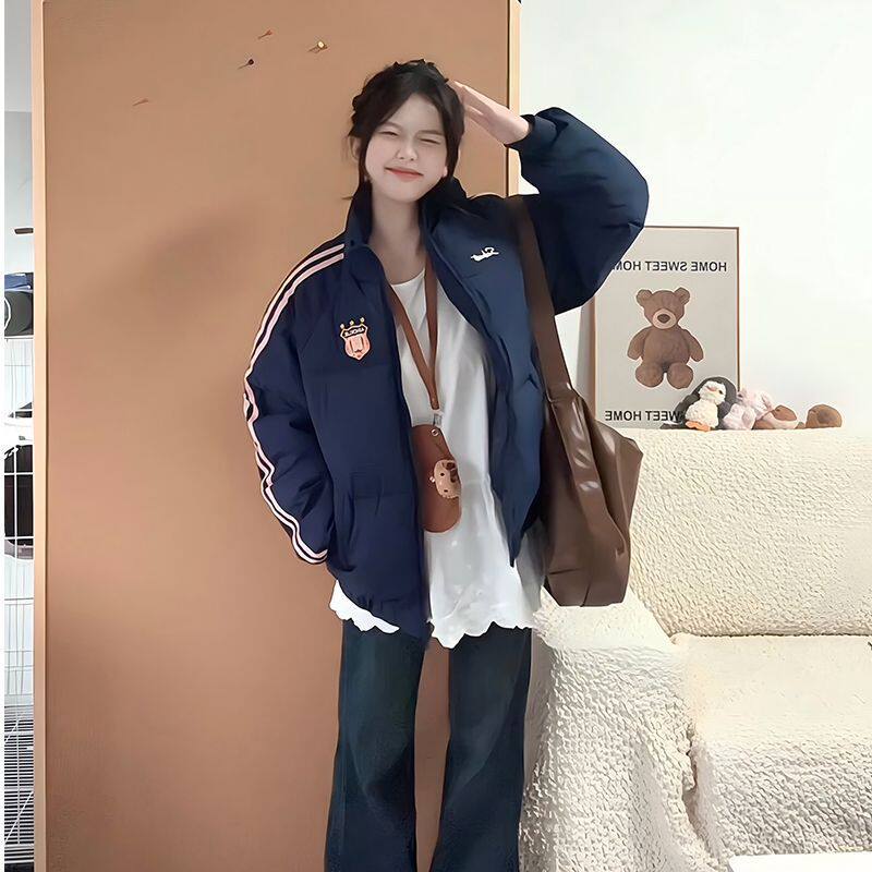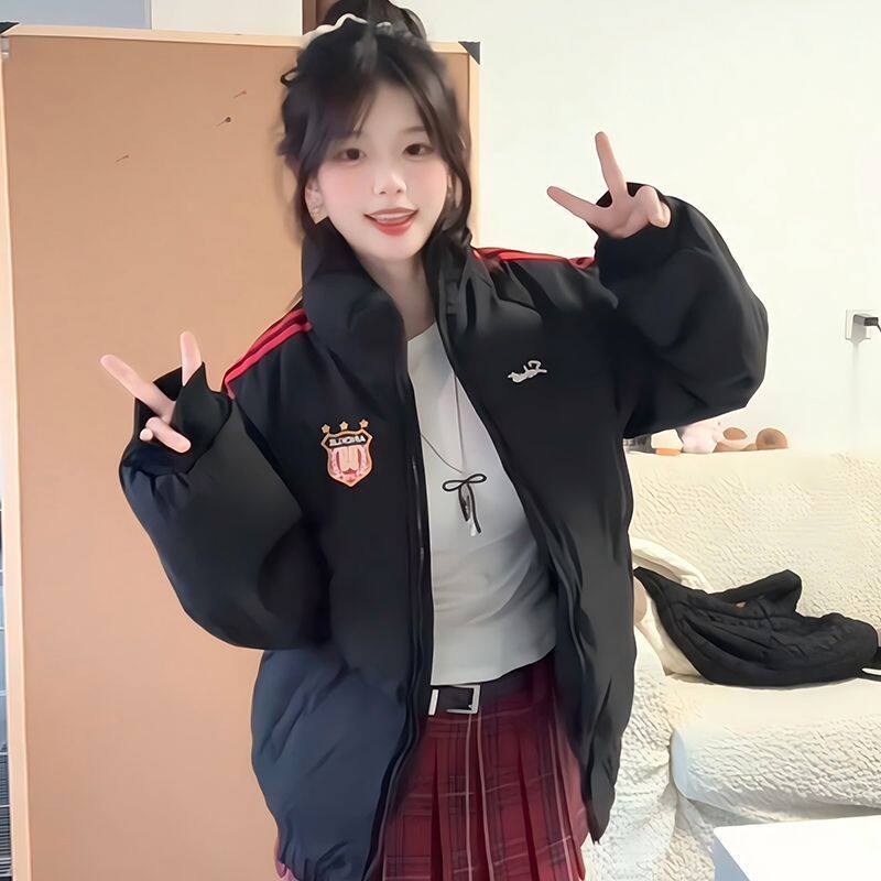 2025冬季新款羽绒棉服女大童初中高中学生宽松立领棉袄面包服外套