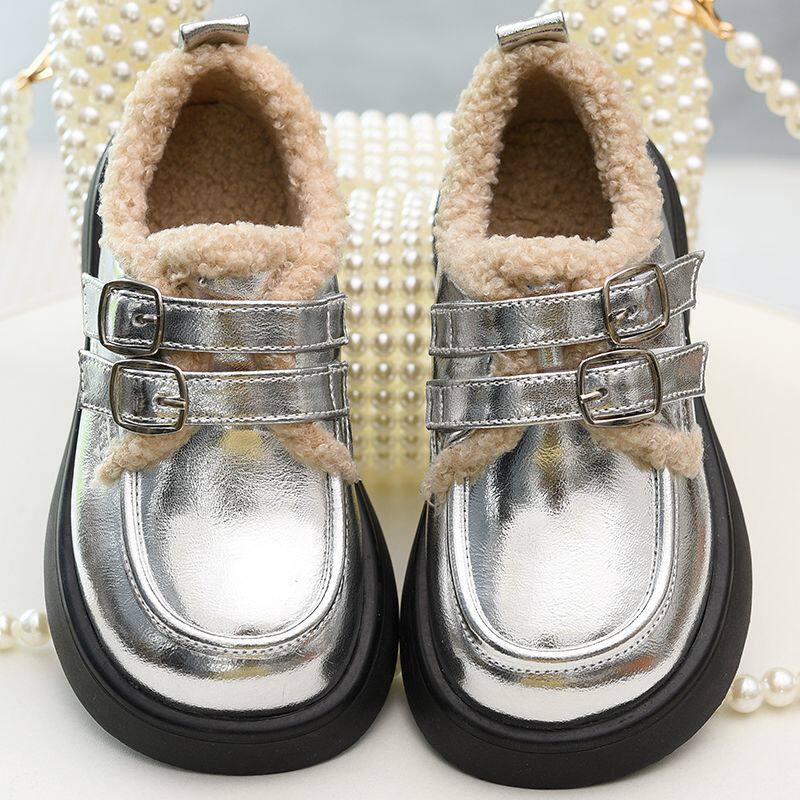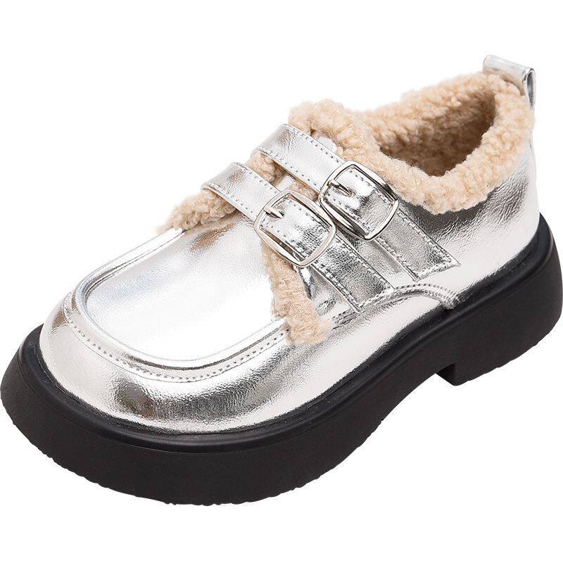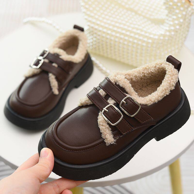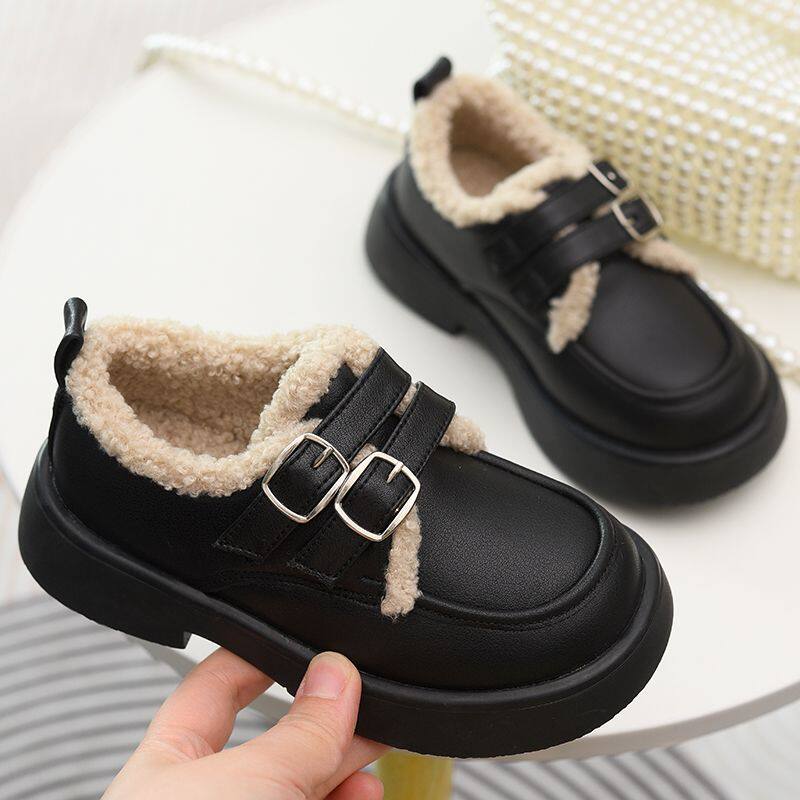 女童真皮乐福短靴儿童加绒棉鞋秋冬新款童鞋女孩英伦风软底小皮鞋