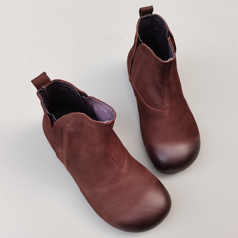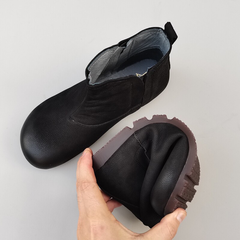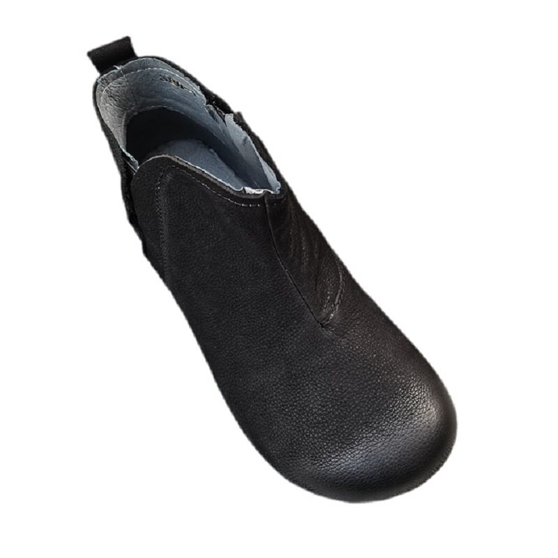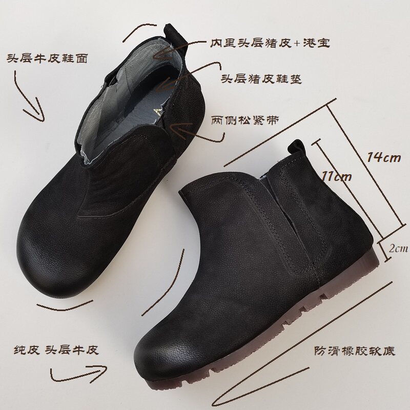 真皮烟套筒短靴女外贸平软底防滑原头层纯牛皮高帮单鞋秋冬季新款