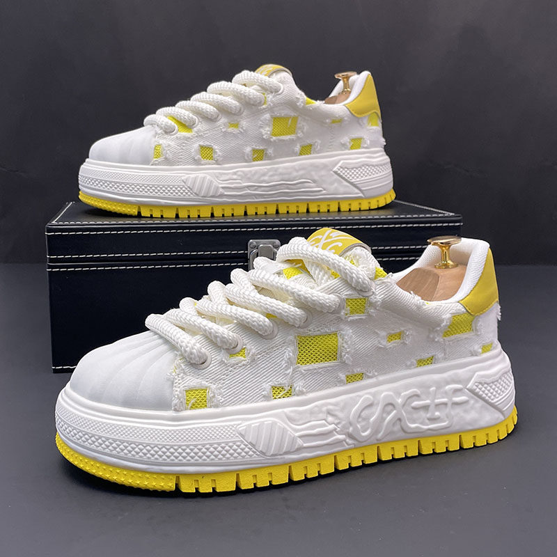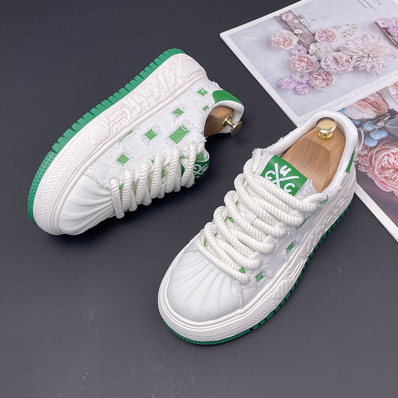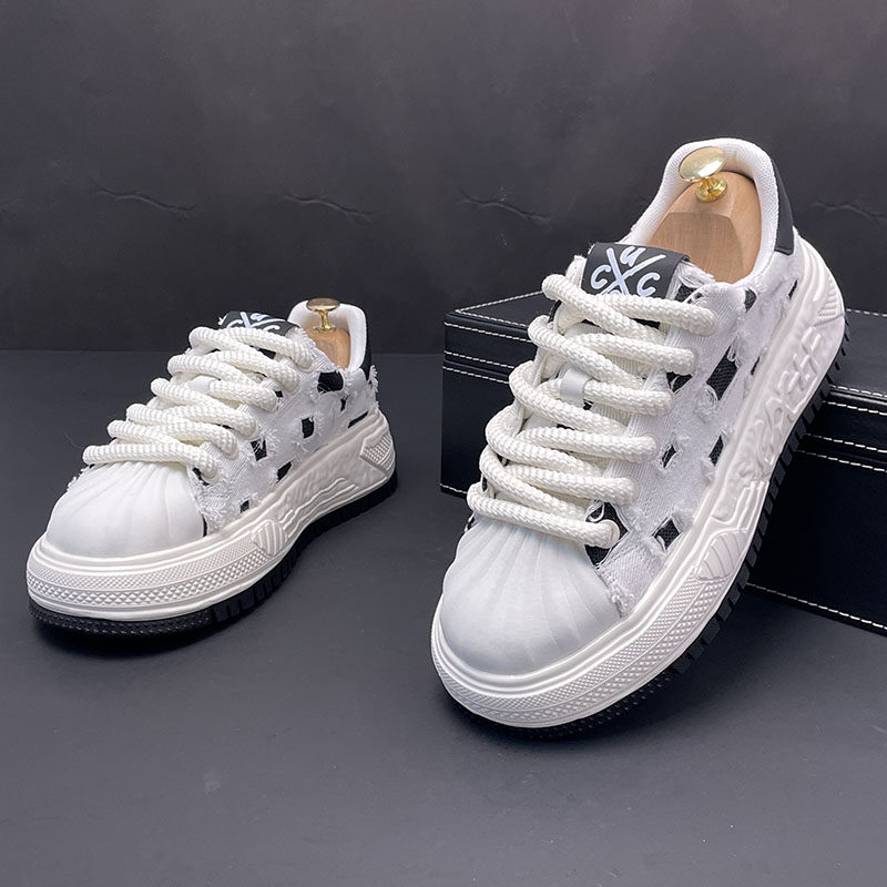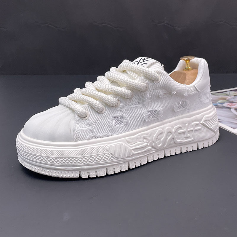 贝壳头小白鞋男内增高秋季新款透气时尚运动休闲百搭厚底帆布板鞋