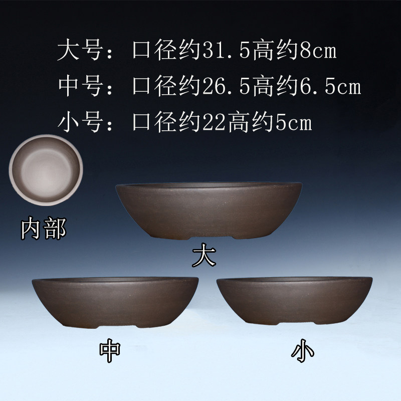 紫砂花盆陶瓷大号口径透气小叶簕竹多肉专用造景矮圆形浅口盆景盆