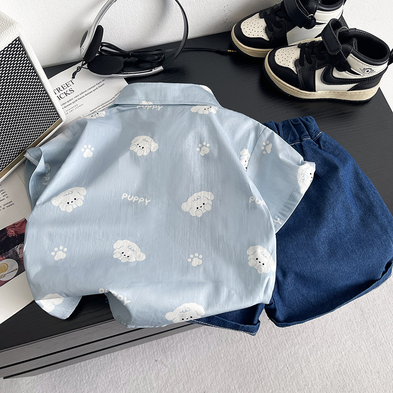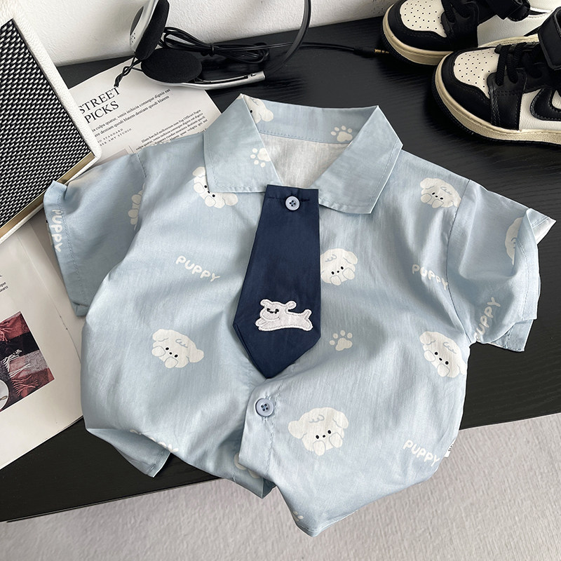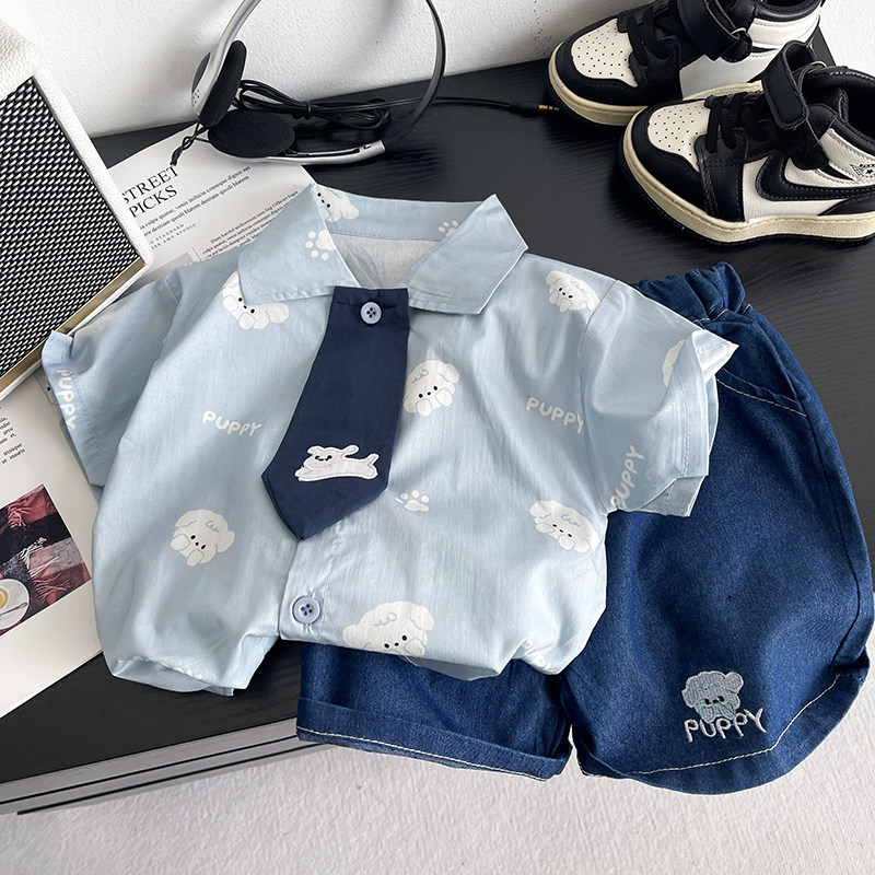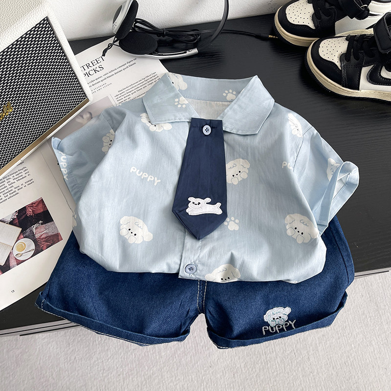 新款男童夏季2026洋气夏装套装潮短袖领带衬衫薄款两件套宝宝童装