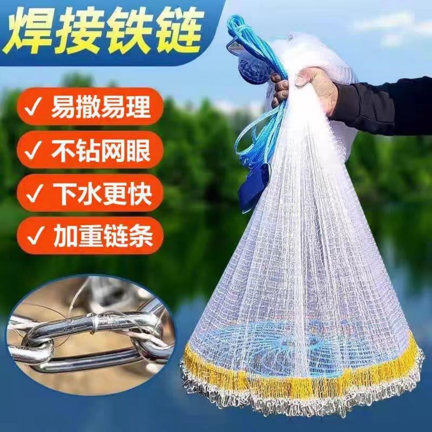 大马力渔网齿轮飞盘撒渔网手抛网自动鱼网钢拉丝圆盘撒网加粗加重