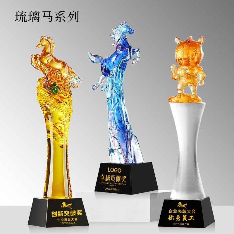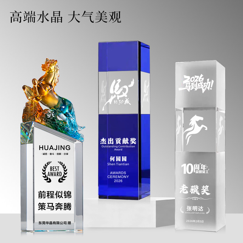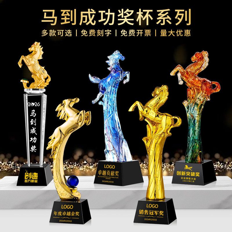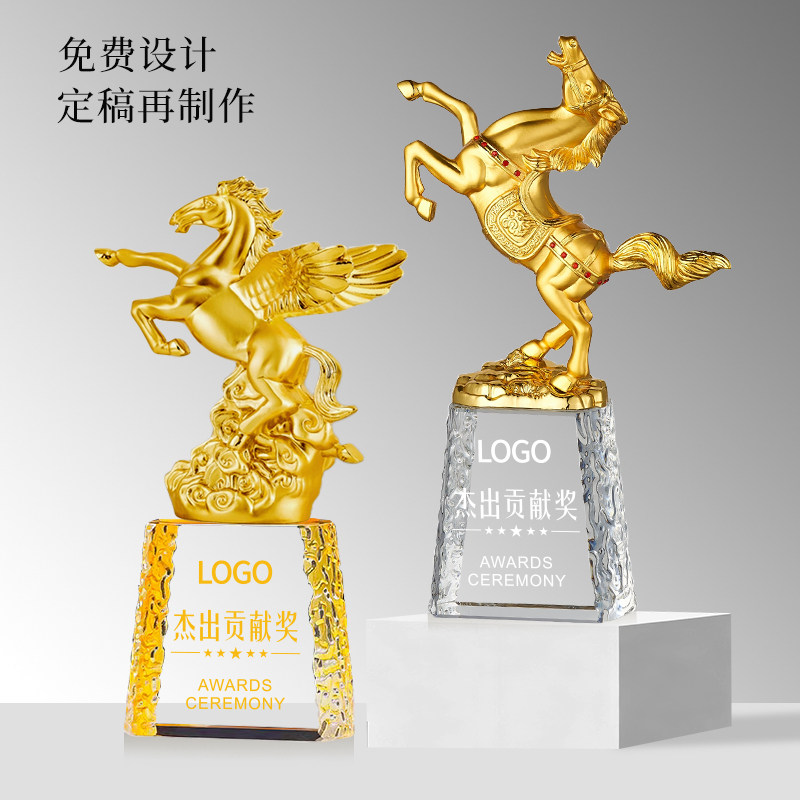 金马水晶奖杯定制马年优秀员工年会销冠荣誉颁奖赛马比赛纪念摆件
