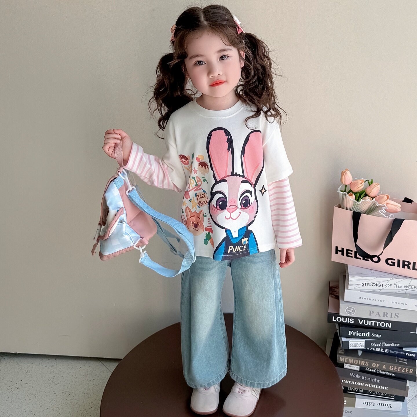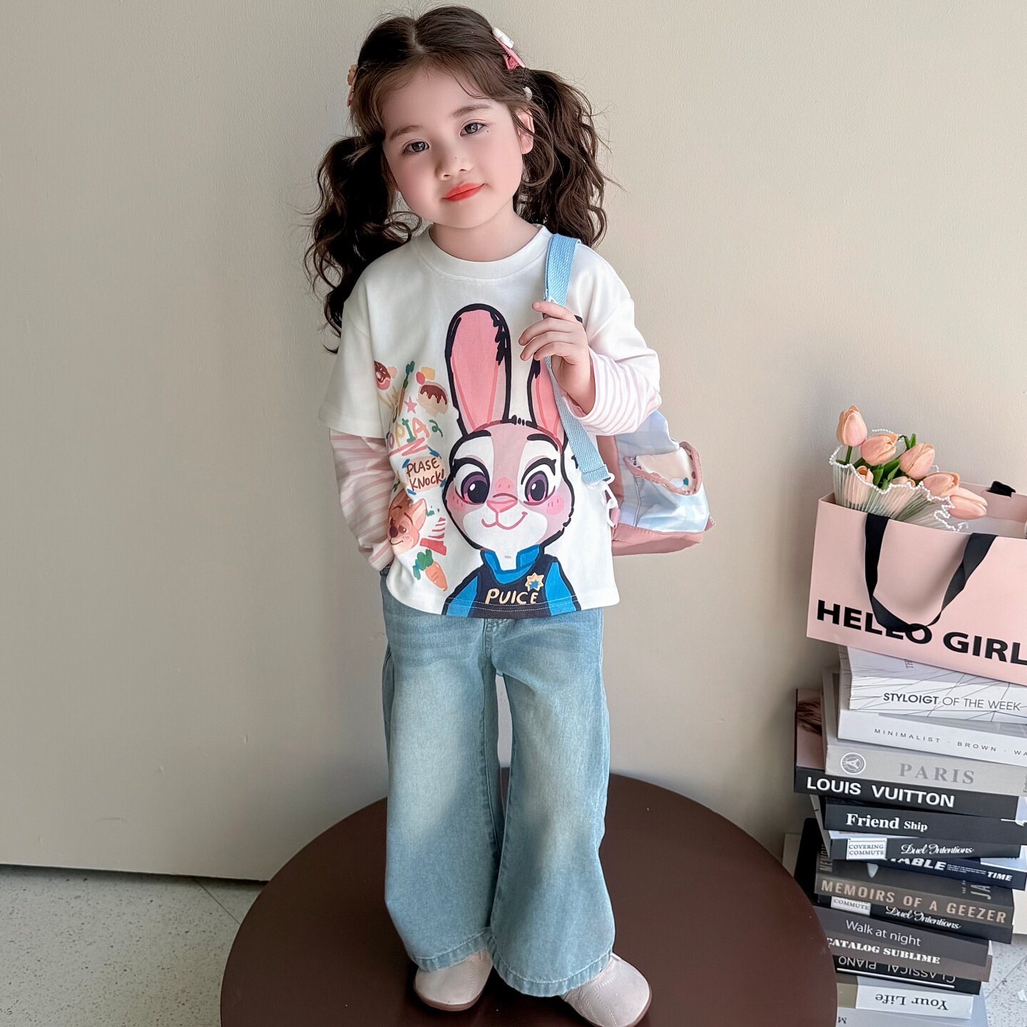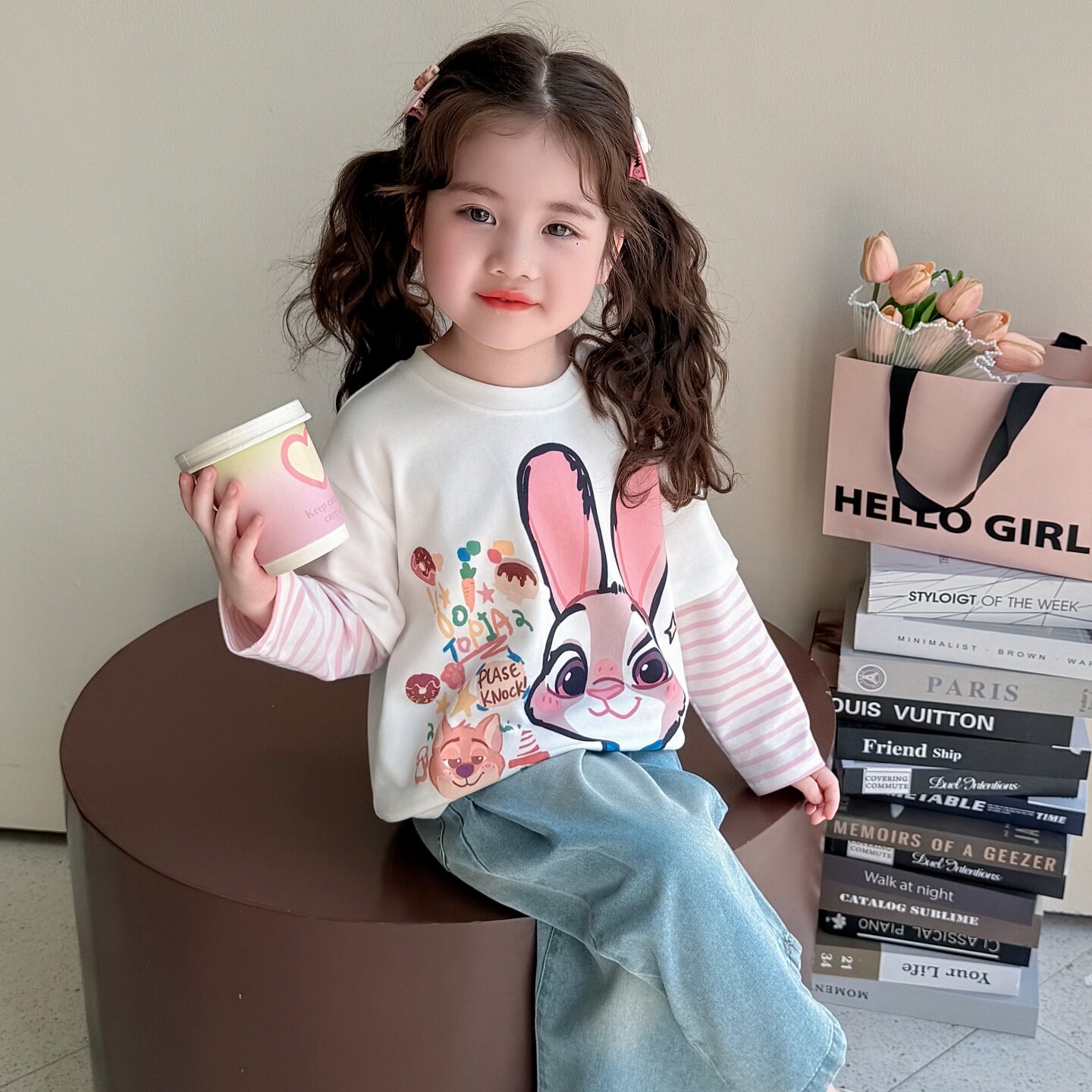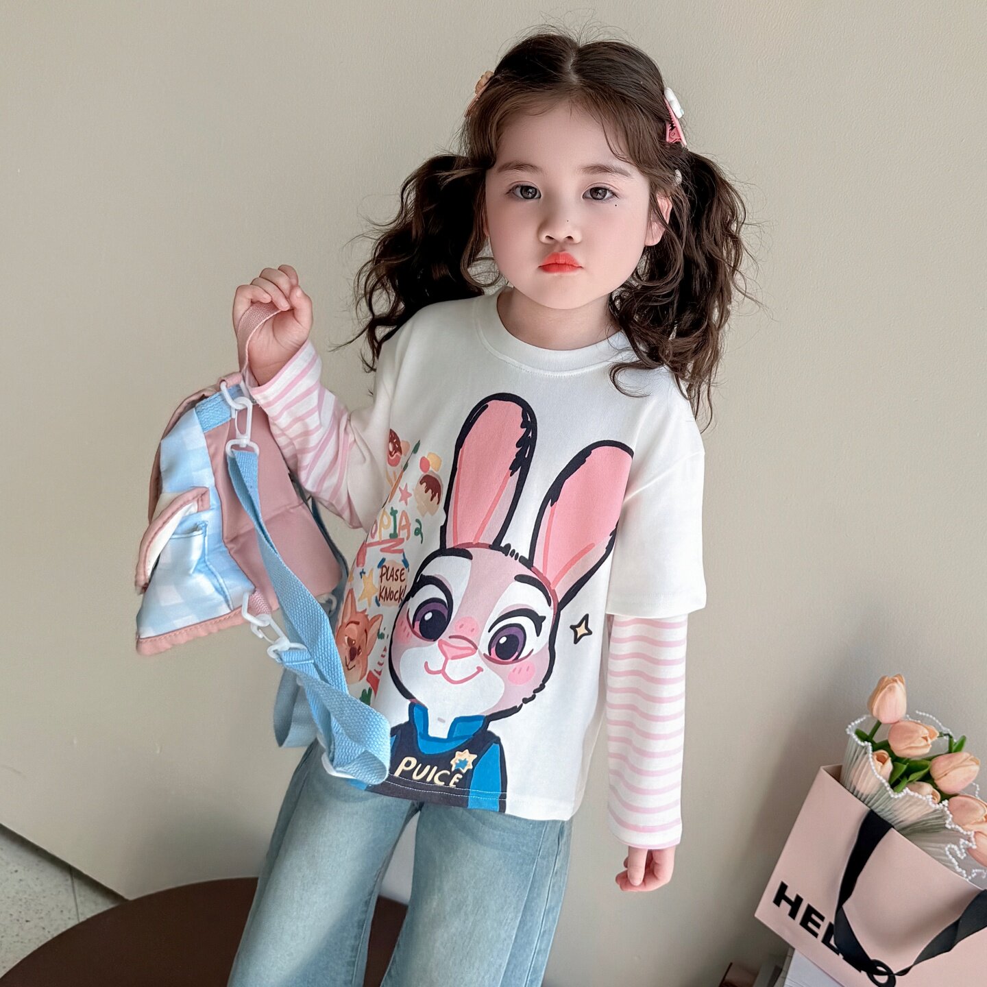 女童短袖2025新款儿童彩条上衣打底衫t小女孩宝宝春季春装T恤薄款