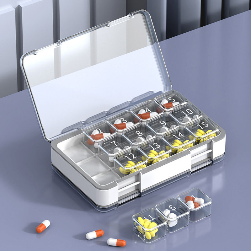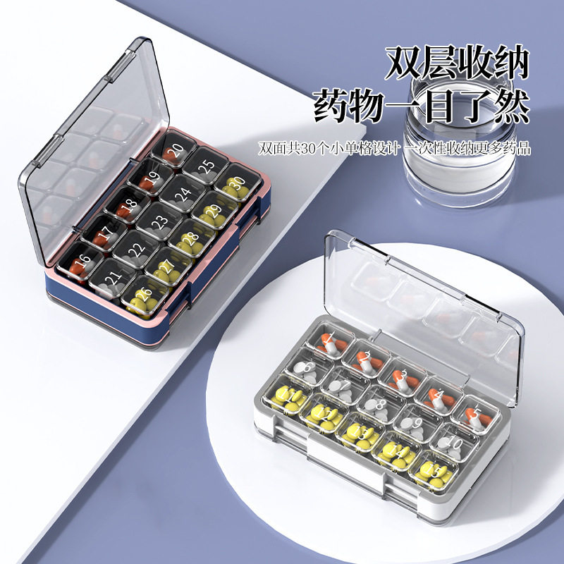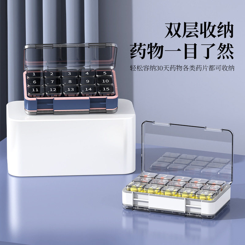 一个月便携式双层大容量密封药盒单格随身药品分装收纳盒
