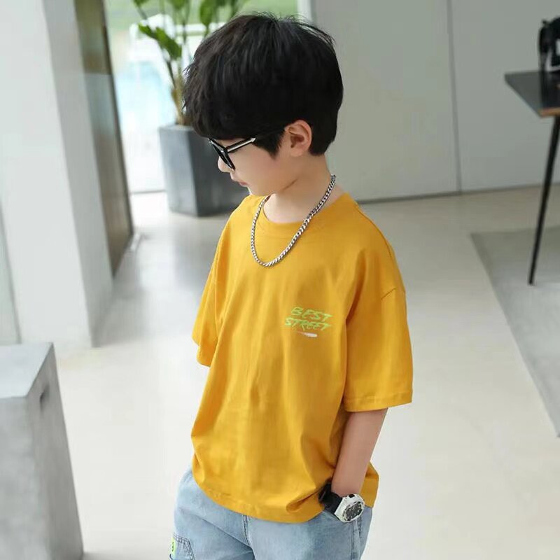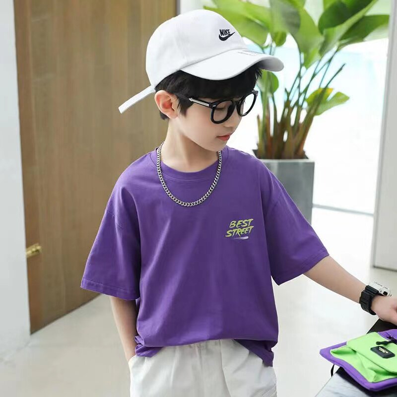 男童纯棉短袖夏季T恤儿童宽松半袖炸街紫潮男韩版休闲中大童体恤