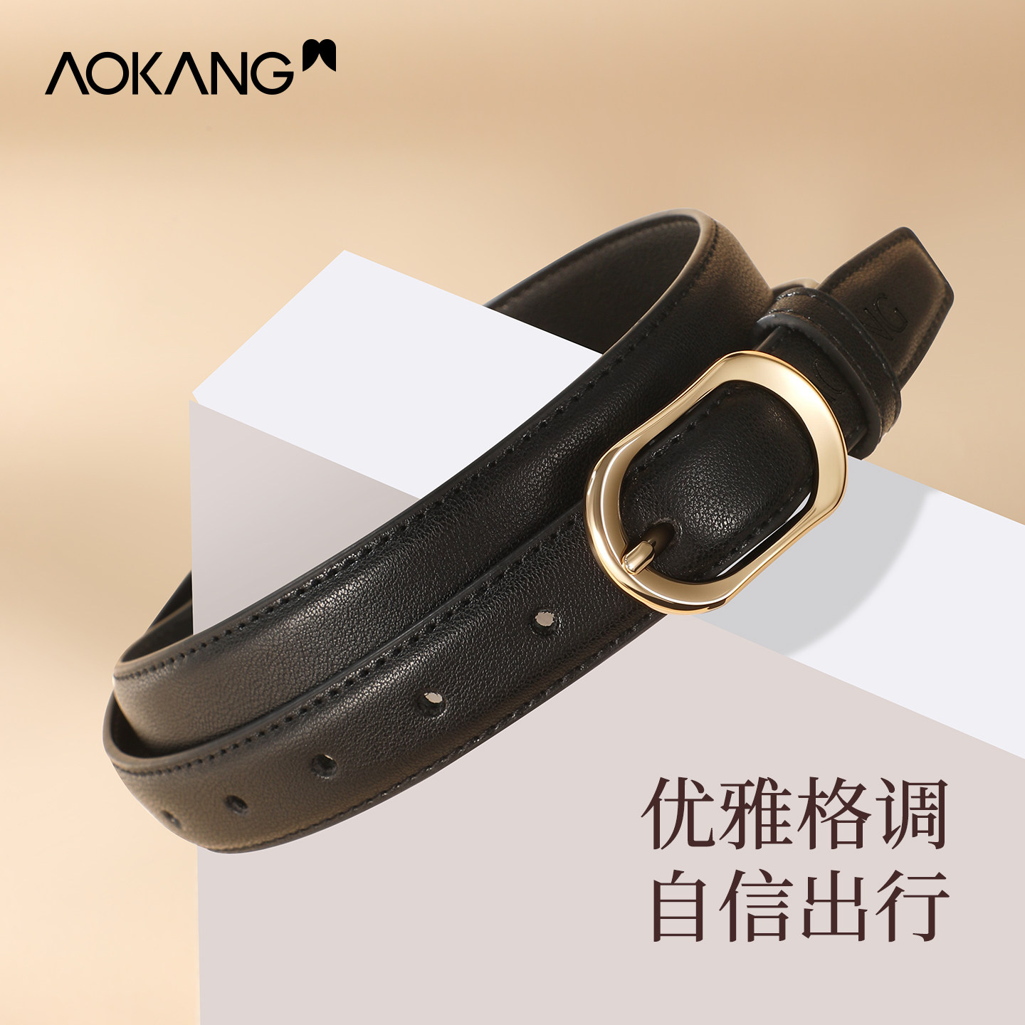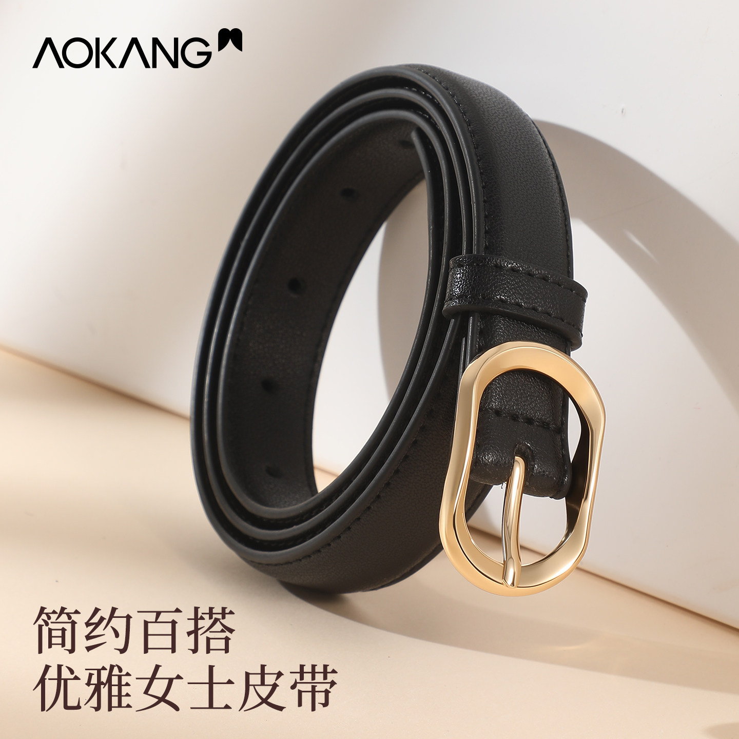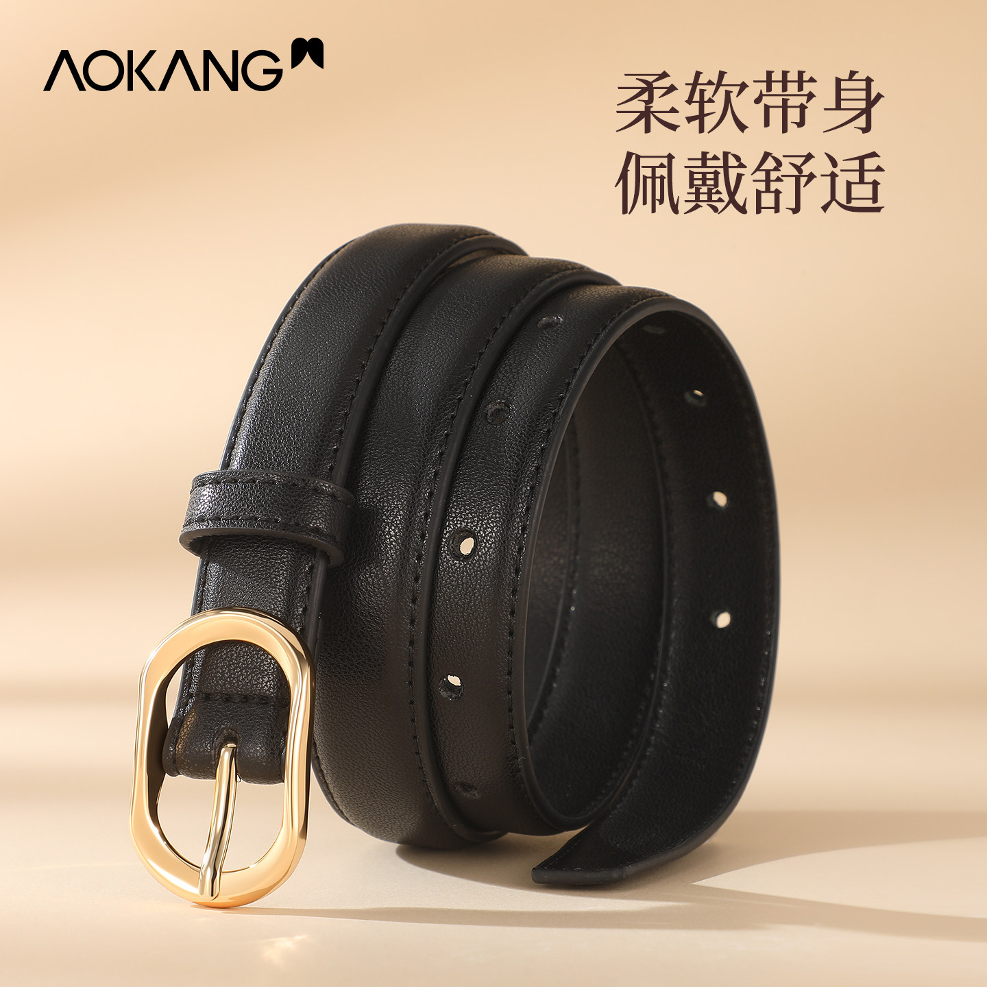 奥康皮带女款真皮牛皮腰带女士高级小众配牛仔裤皮带黑色配饰新款