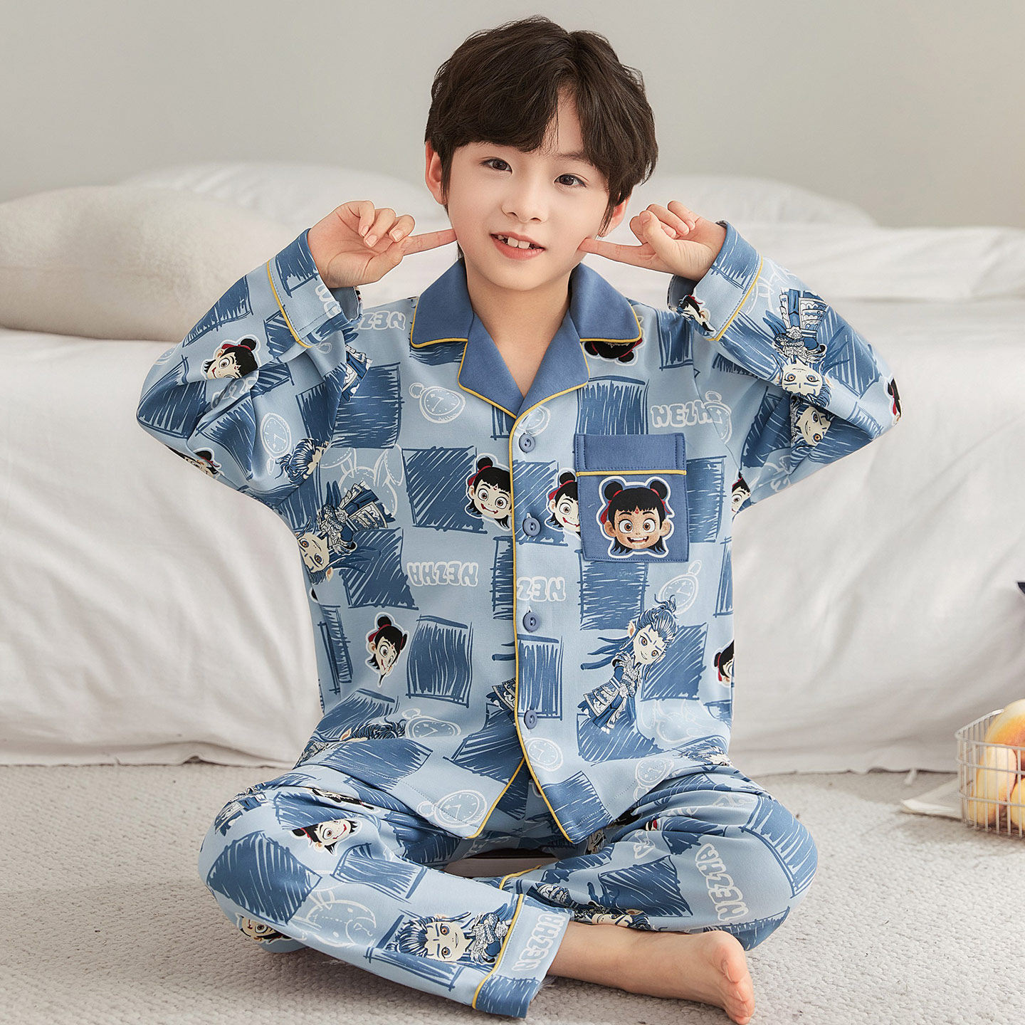 儿童睡衣春秋季男童纯棉长袖2026年新款卡通洋气青少年家居服套装