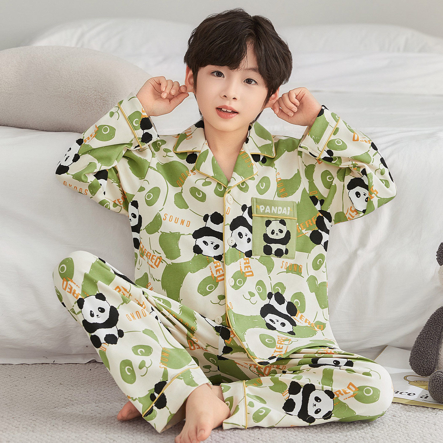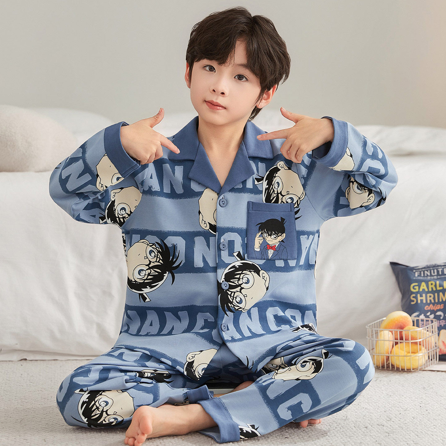 311线报网描述:春秋季男童纯棉长袖卡通青少年家居服套装