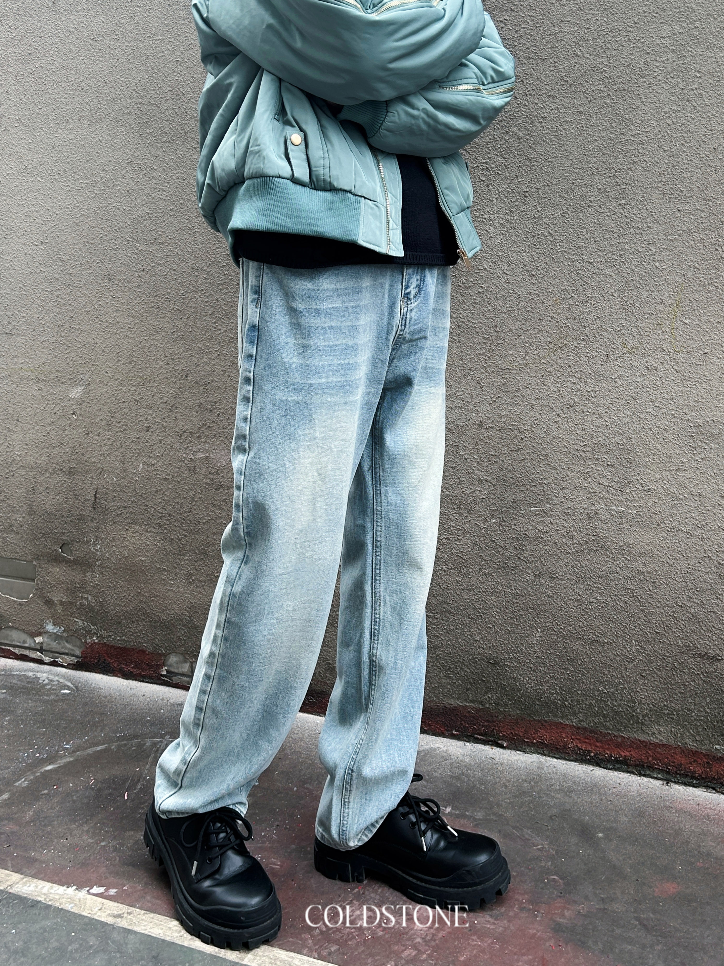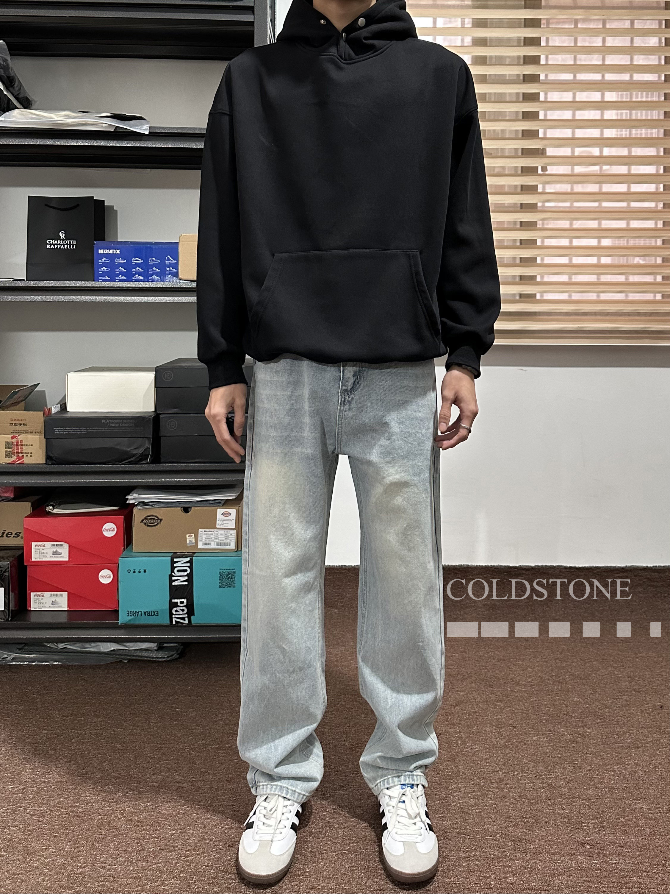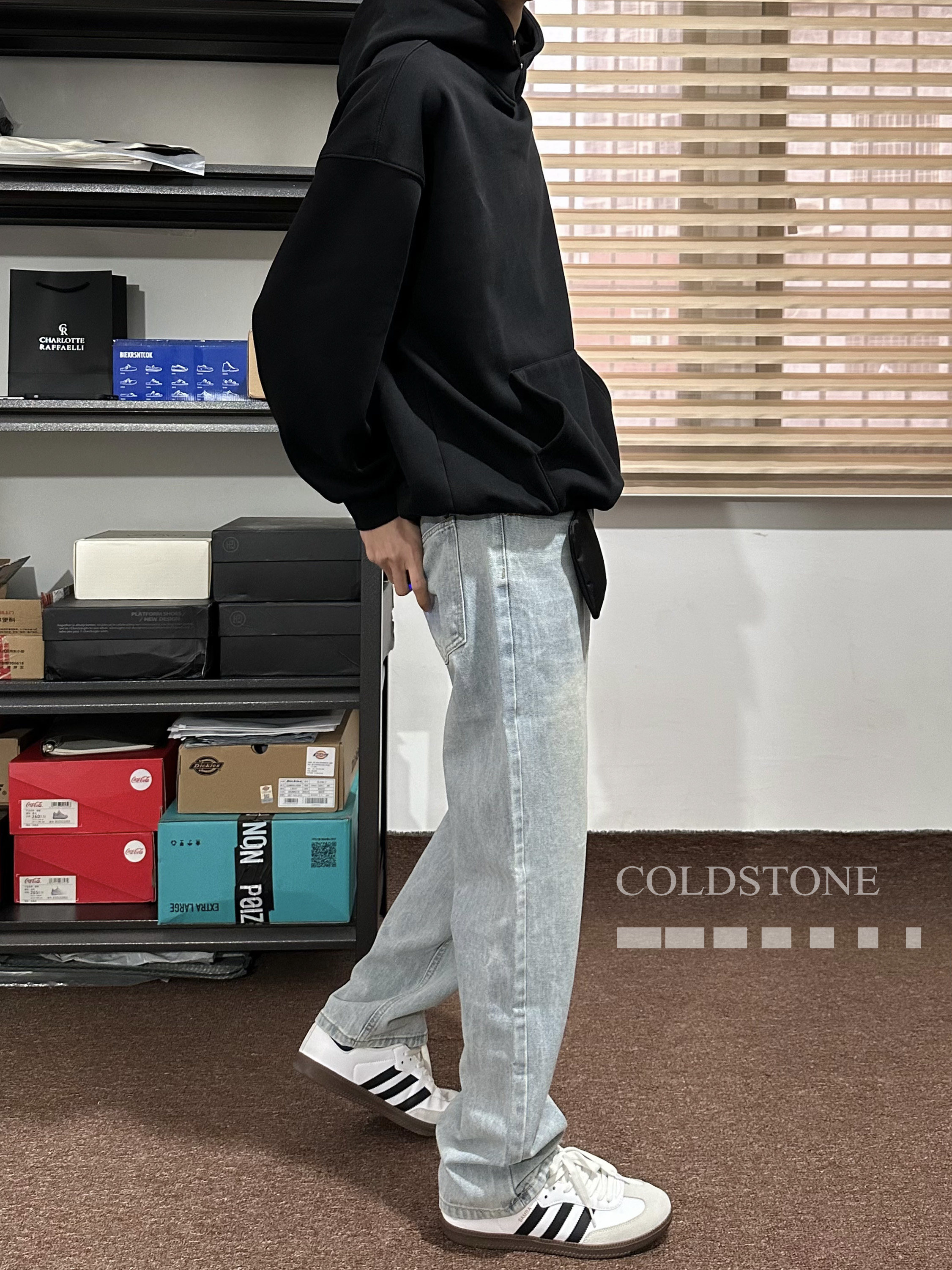 COLDSTONE 浅蓝色阔腿牛仔裤男女款高腰显瘦宽松拖地直筒裤子