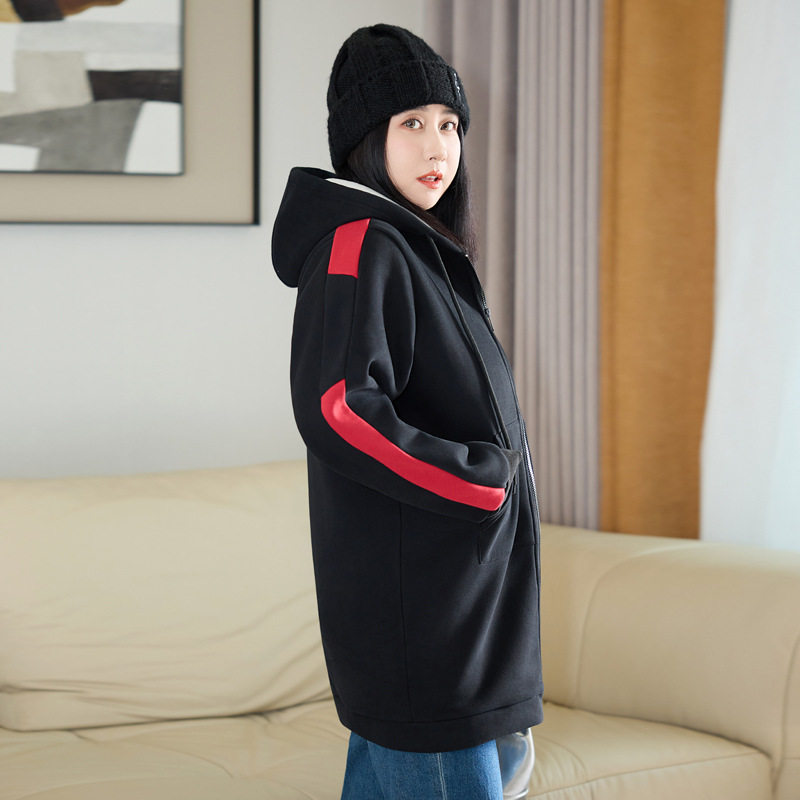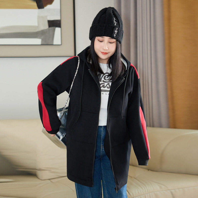 300斤特大码女装加绒加厚外套秋冬新款200中长保暖胖MM棉连帽卫衣