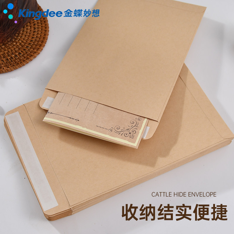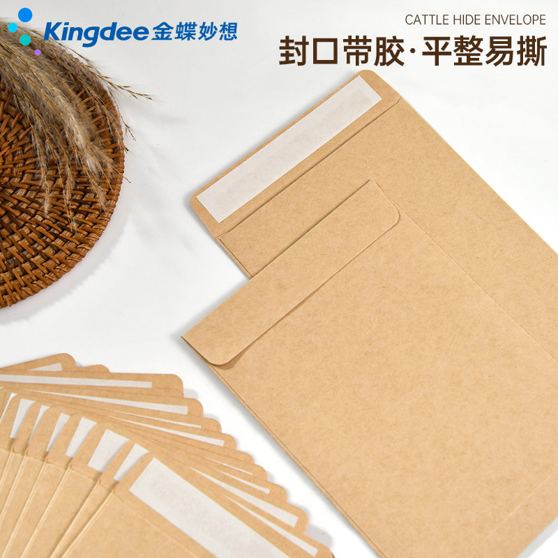 金蝶空白牛皮纸信封中式自带封口粘胶加厚无字空白装现金钱袋双面胶信封发票据工资袋专用信封袋3/5/7/9号