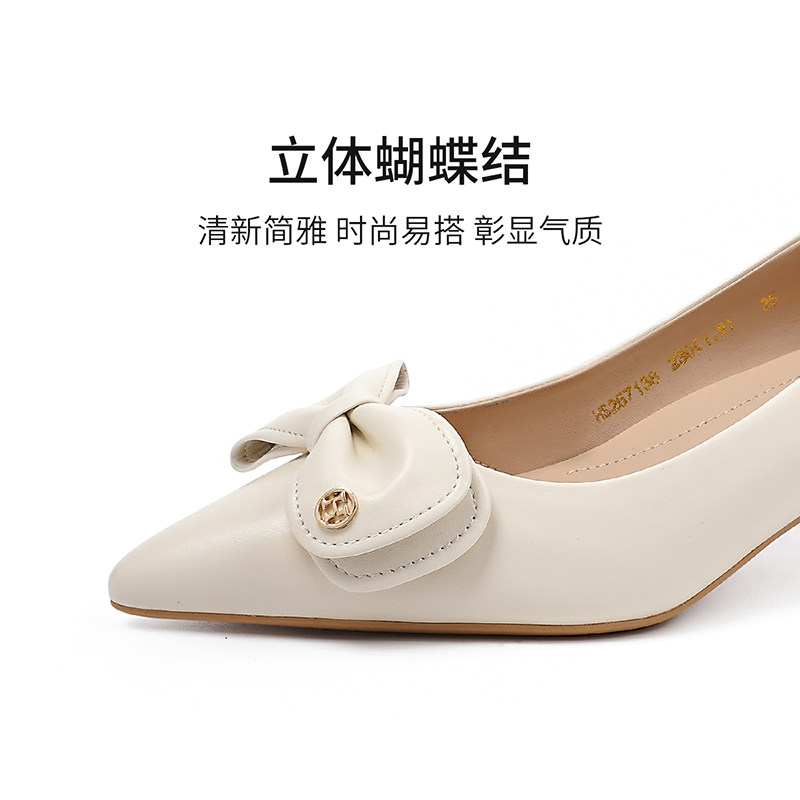 哈森尖头蝴蝶结通勤女鞋春季新款舒适羊皮浅口单鞋HS257138