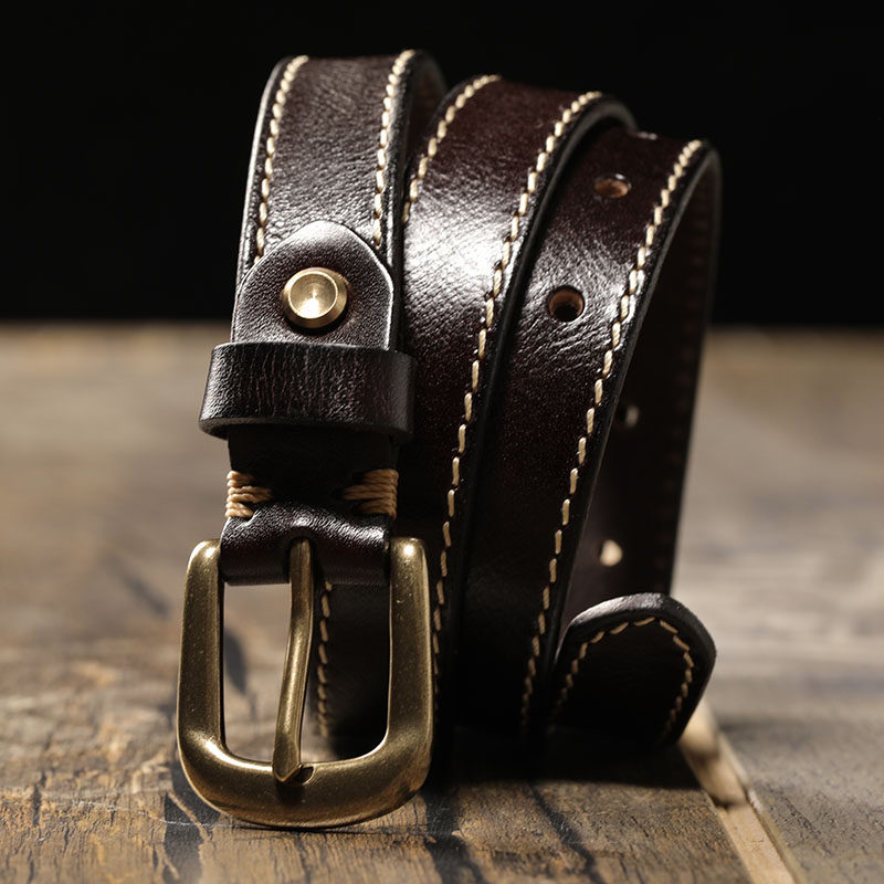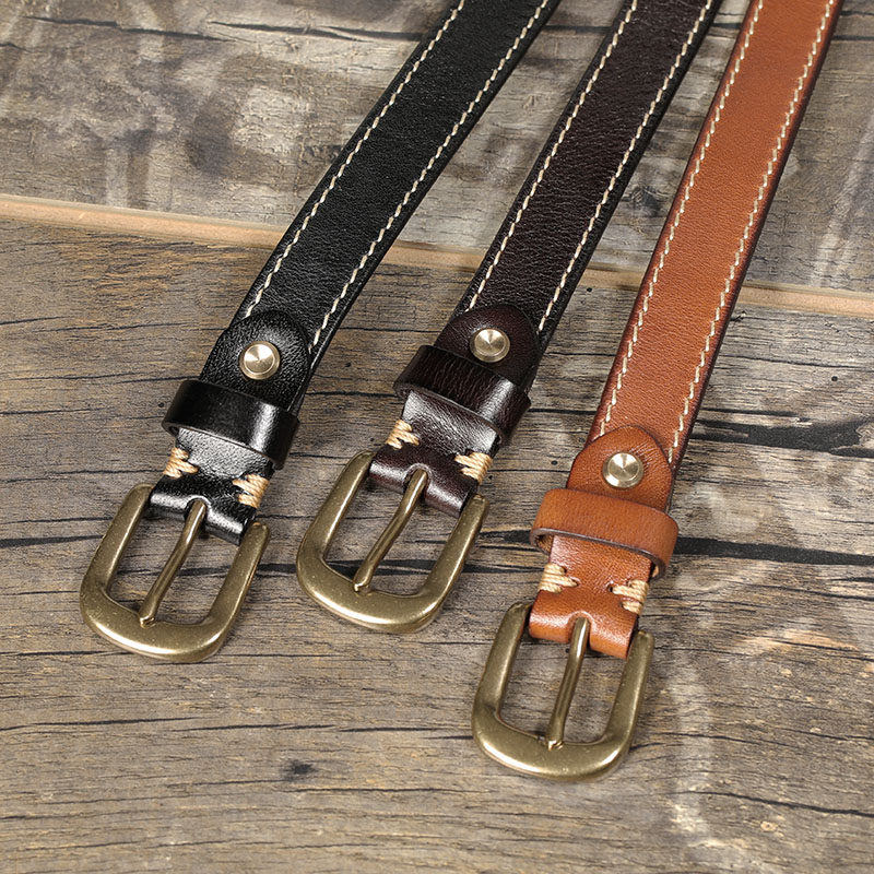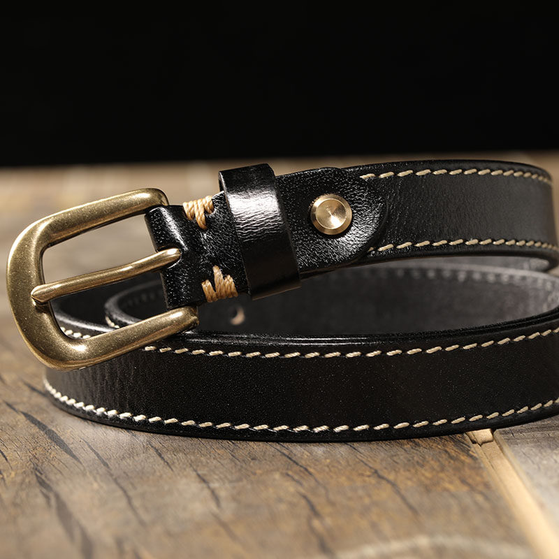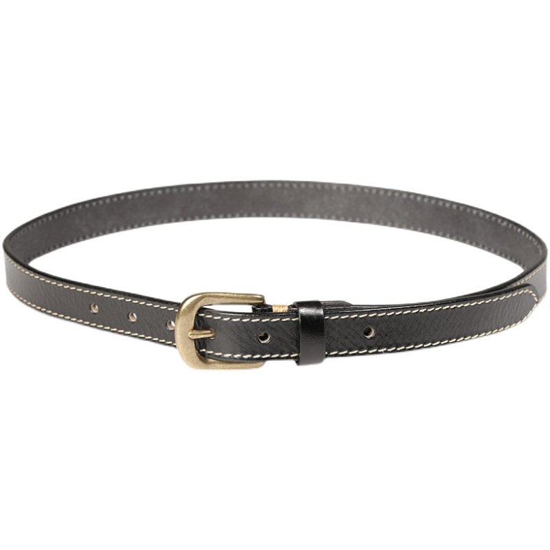 铜扣复古窄黑色女士皮带牛仔裤装饰腰带新款女头层牛皮针扣百搭
