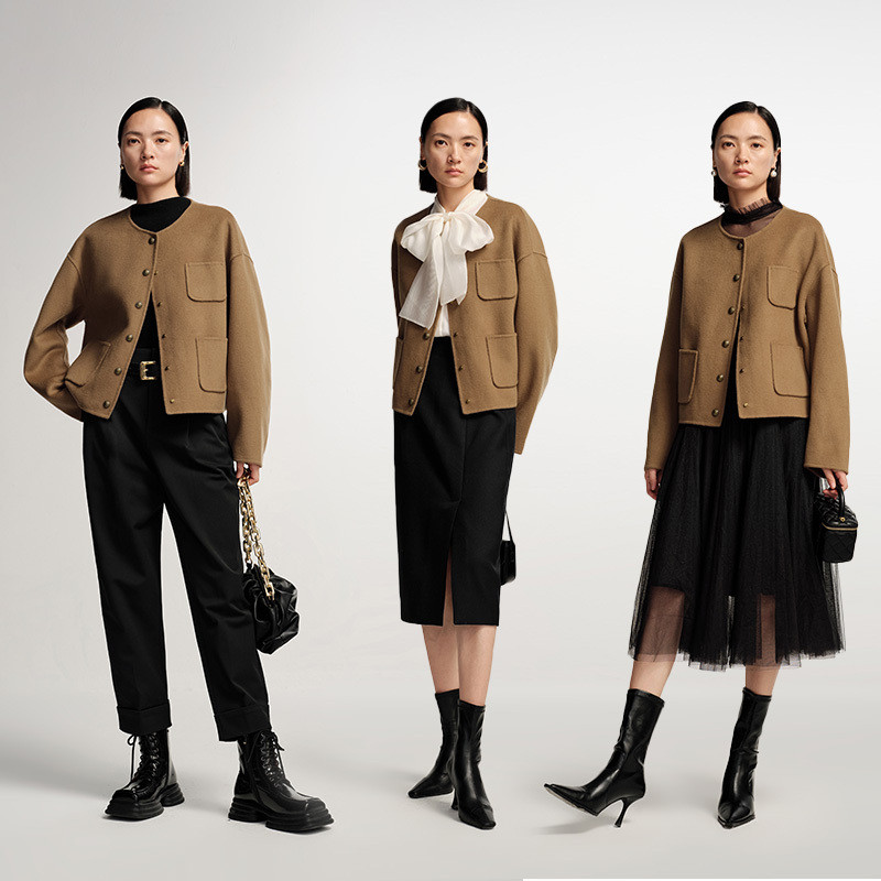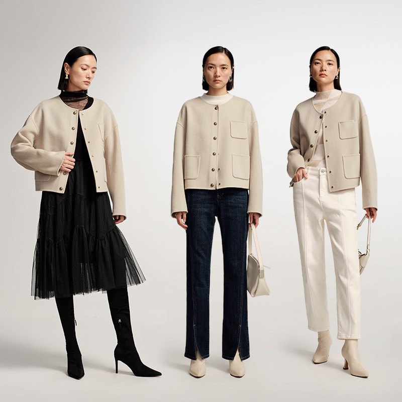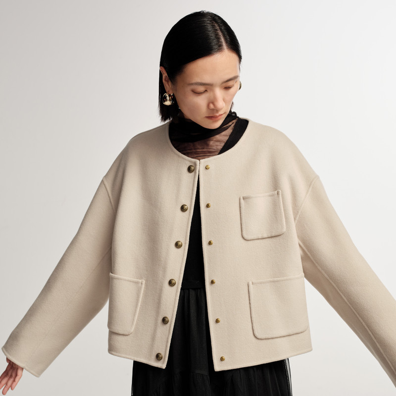 ARIOSEYEARS冬季新品小香风纯羊毛羊绒双面呢外套女21011015