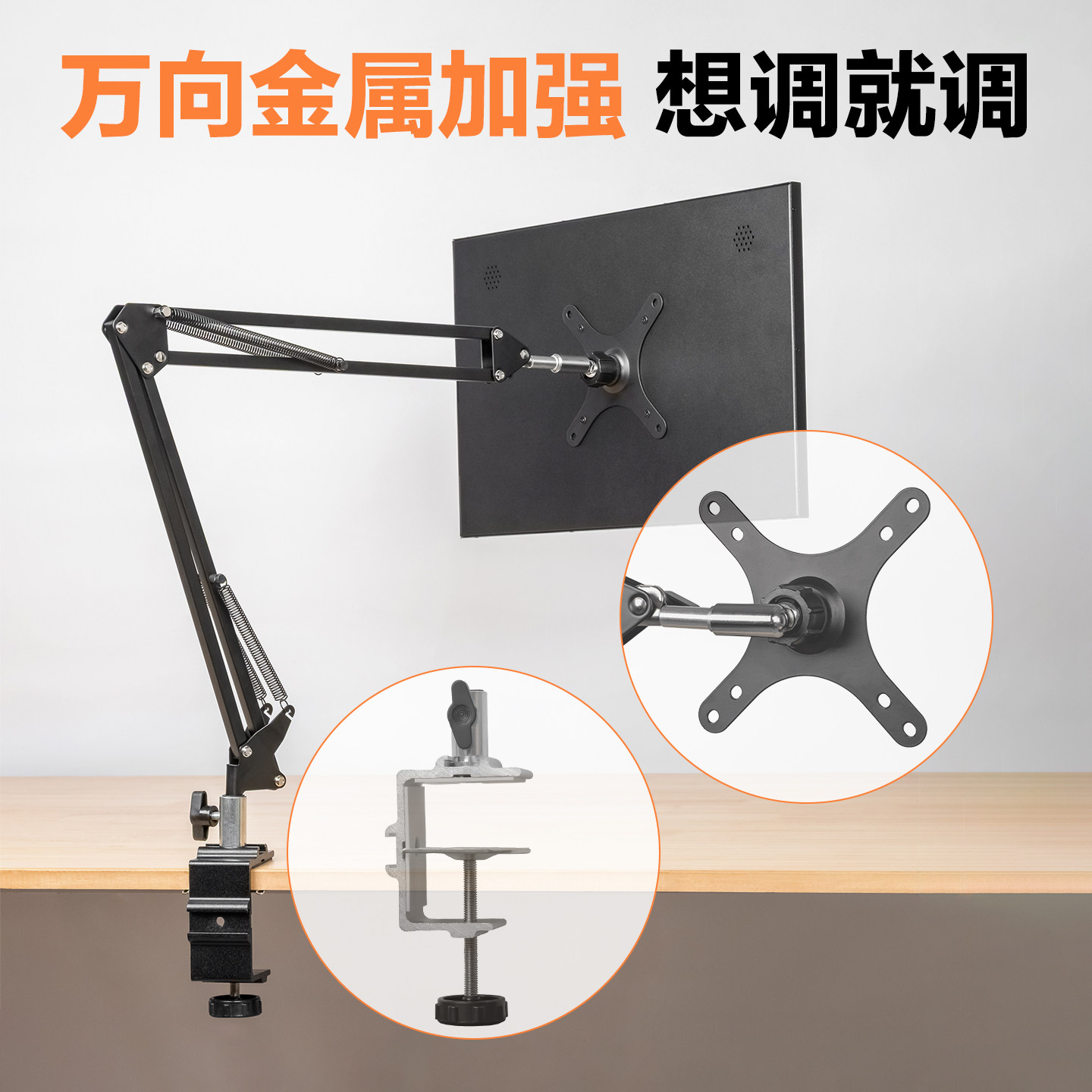 便携显示器支架18寸副屏桌面床头手机平板拓展横屏竖屏vesa金属架