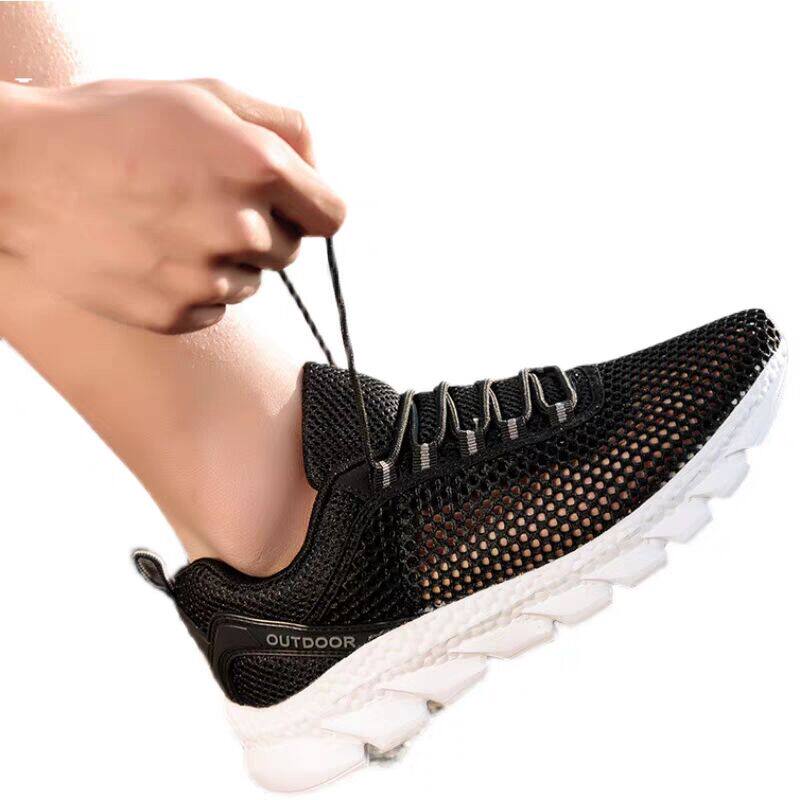 夏季新款凉鞋男鞋运动网鞋单网面镂空透气鞋底有洞带孔溯溪汗脚穿