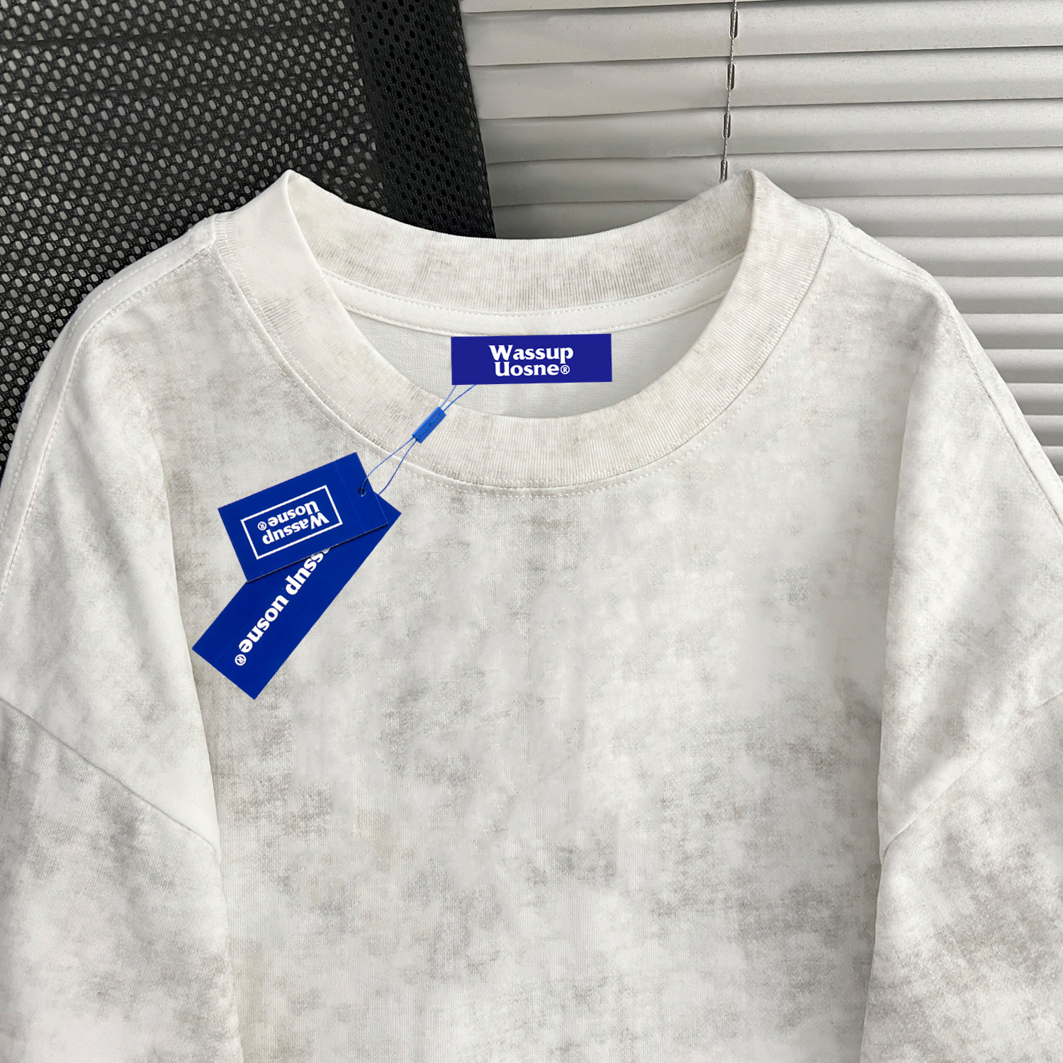 WASSUP美式蜡染短袖T恤男生2026新款夏季宽松青少年重磅纯棉上衣