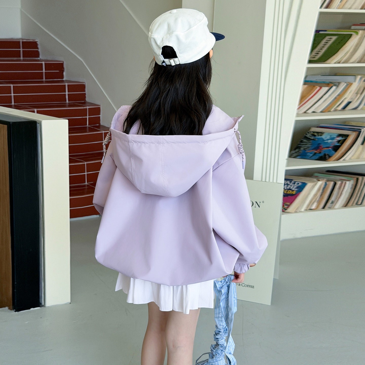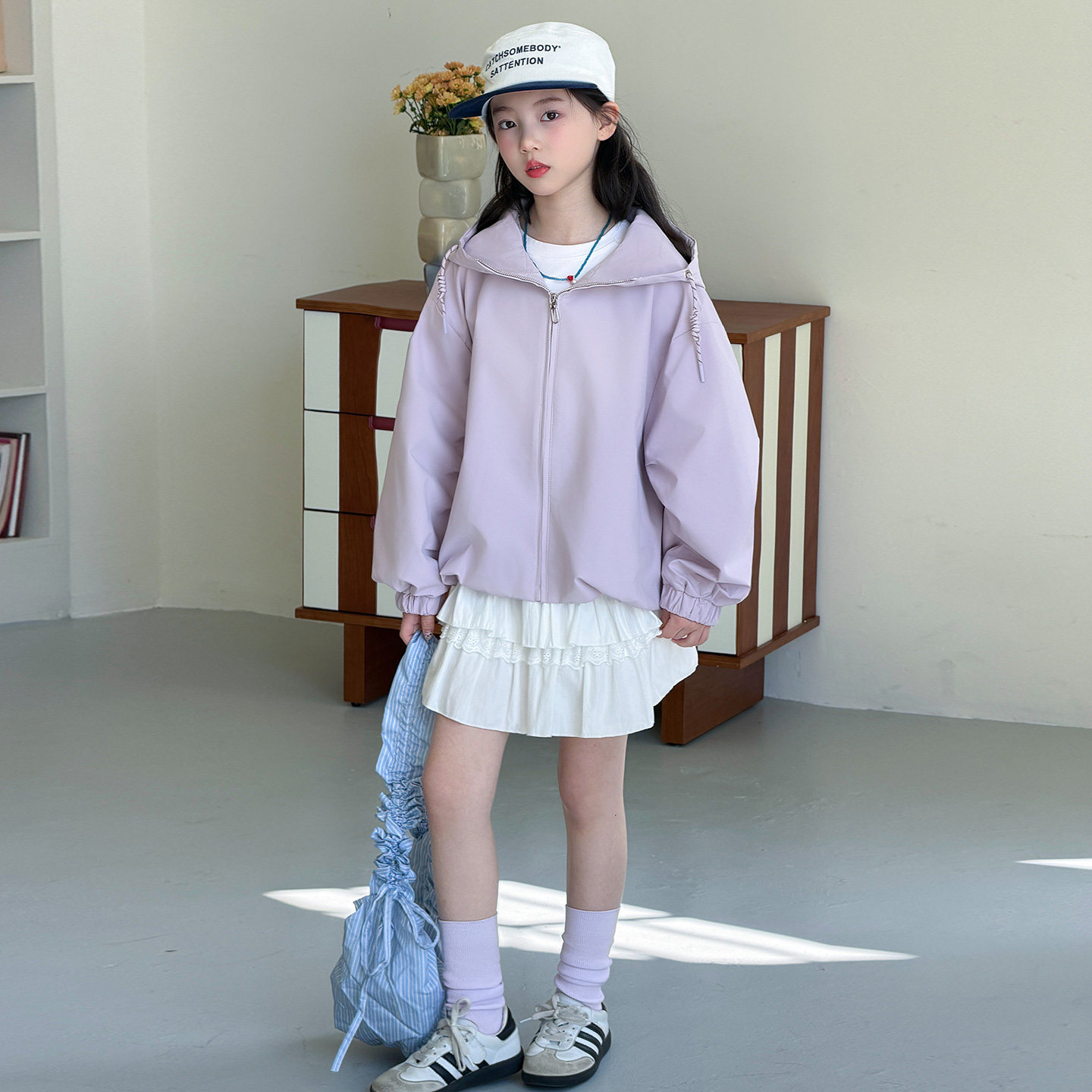 韩国女童连帽外套春秋2026新款初中生紫色拉链夹克宽松冲锋衣春装