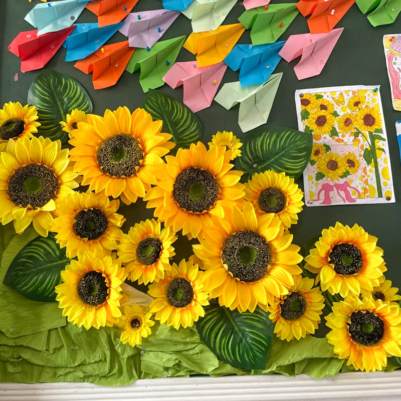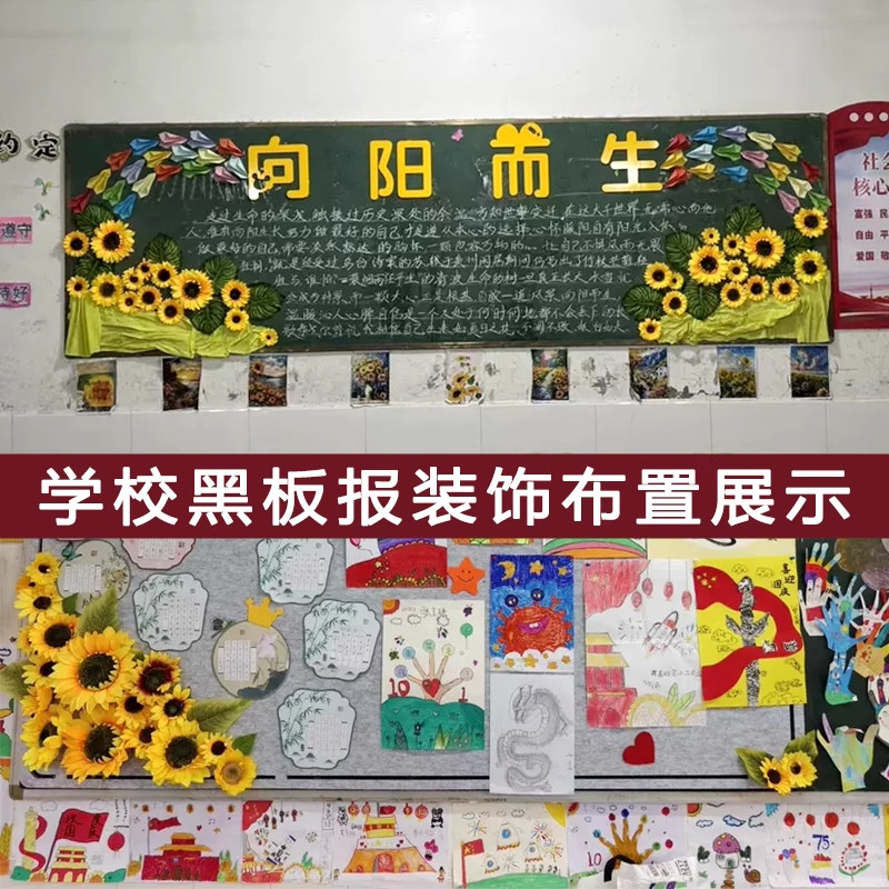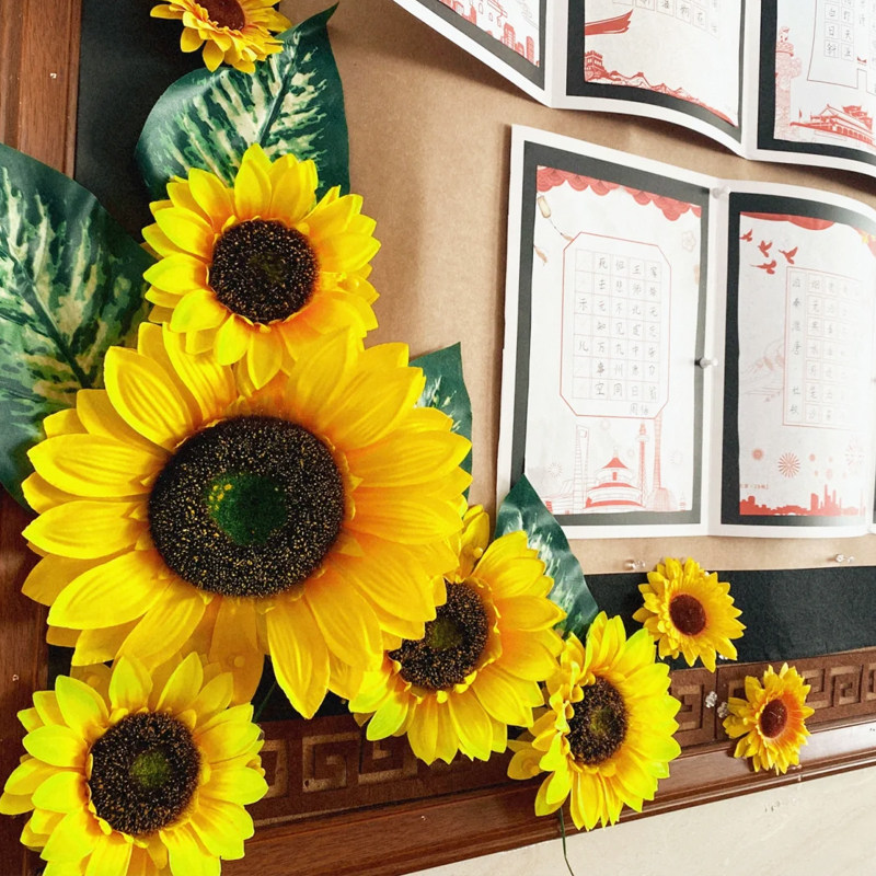向日葵太阳花仿真花朵树叶立体环创幼儿园墙面贴六一边框装饰材料