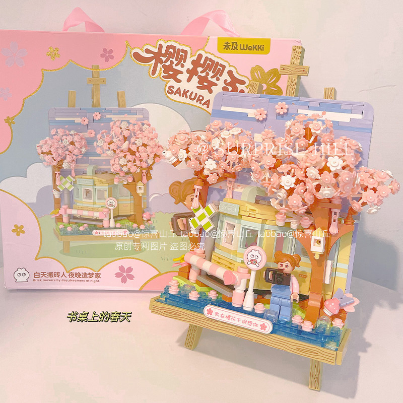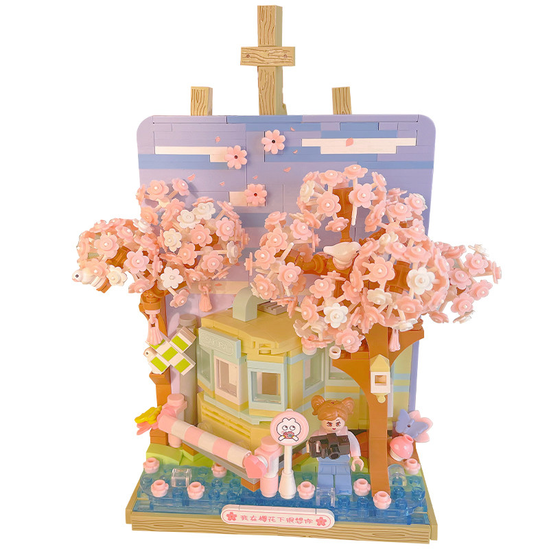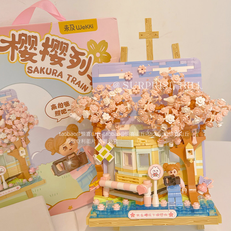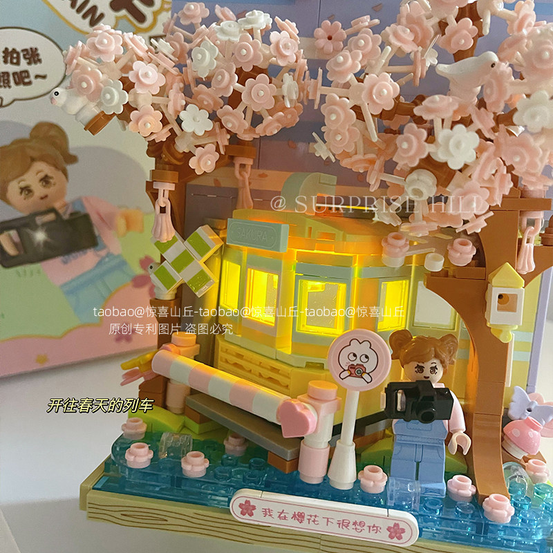 春日樱花列车画板积木男女拼插儿童玩具桌面摆件女孩惊喜生日礼物