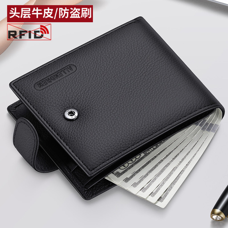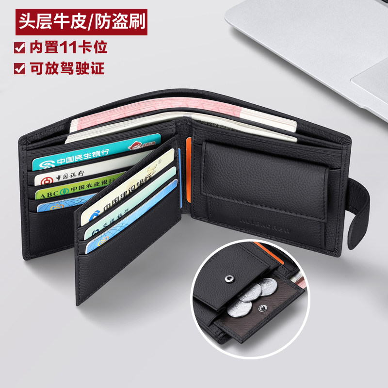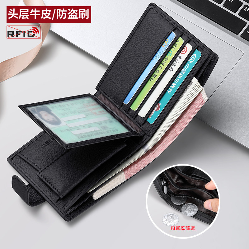 真皮钱包男款大学生头层牛皮青少年多卡位大容量拉链防磁卡包一体