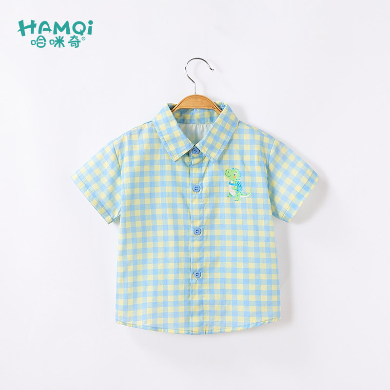 男童短袖衬衫夏季新款童装小儿童帅气格子衬衣宝宝纯棉半袖上衣潮